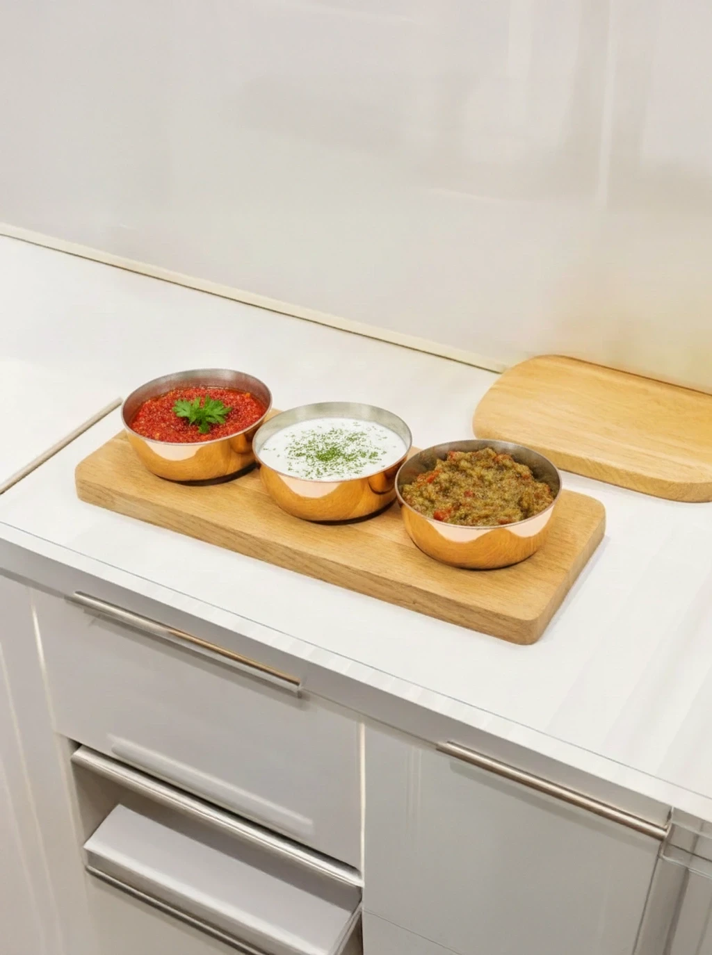 El Yapımı ve Özel İşçilik: Ustalarımız tarafından özenle el işçiliği ile üretilen her sosluk seti, özgün tasarıma sahiptir.