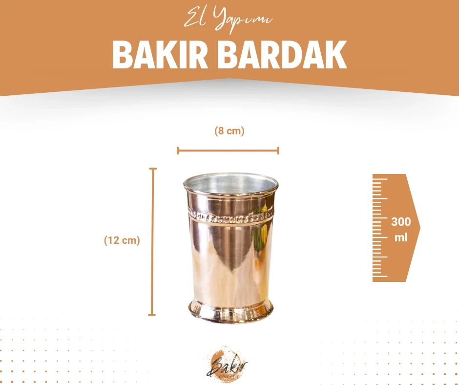 Her bir bakır bardak, usta zanaatkarlar tarafından özenle işlenmiştir fakat tamamen el işçiliği olduğu için ufak değişiklikler ve düzensizlikler olabilir. Desenlerde değişiklik olabilir. El işçiliği ürünler için ufak hatalar olağan sayılmaktadır.