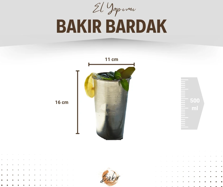 Her bir bakır bardak, usta zanaatkarlar tarafından özenle işlenmiştir fakat tamamen el işçiliği olduğu için ufak değişiklikler ve düzensizlikler olabilir. Desenlerde değişiklik olabilir. El işçiliği ürünler için ufak hatalar olağan sayılmaktadır.