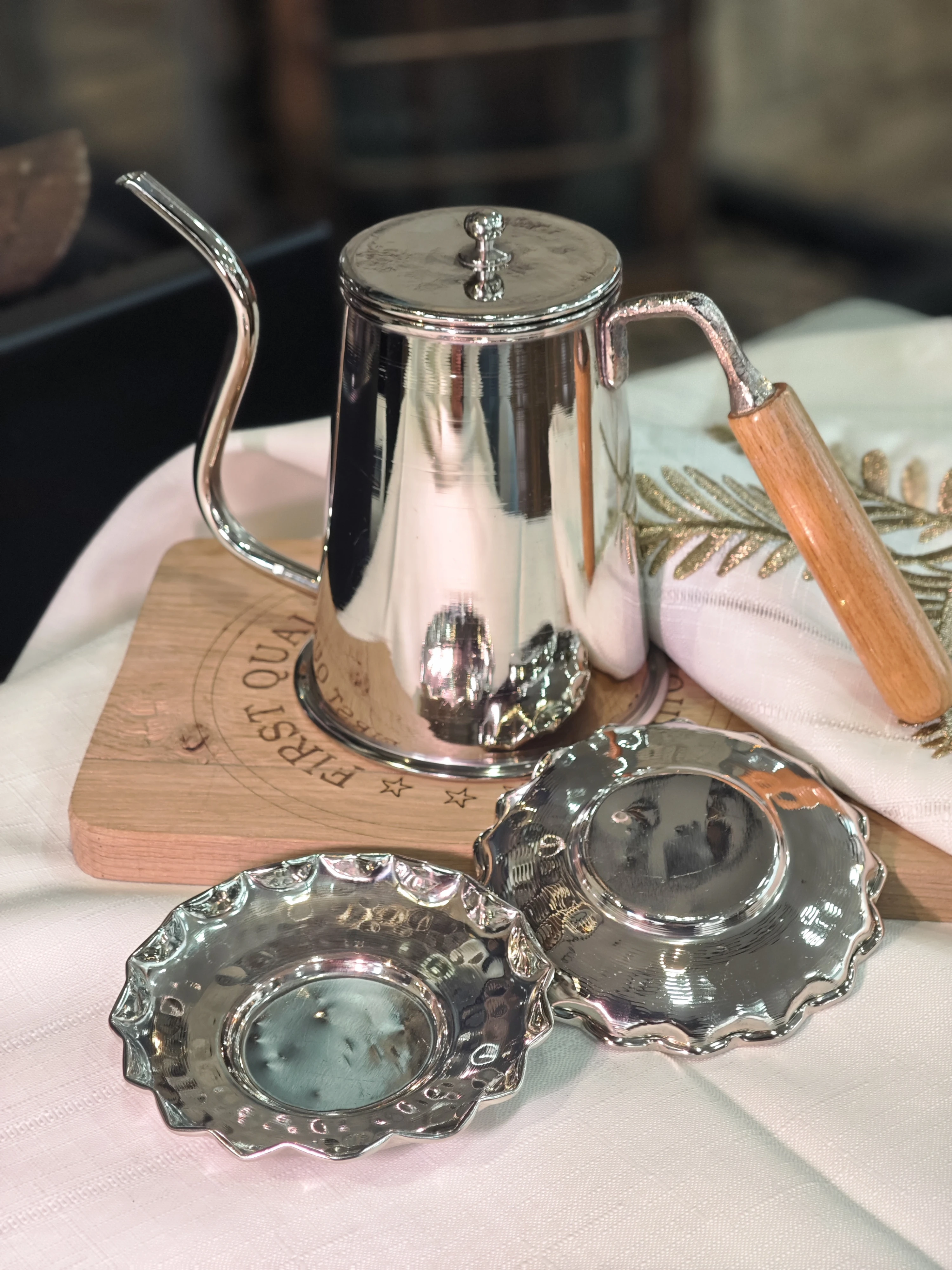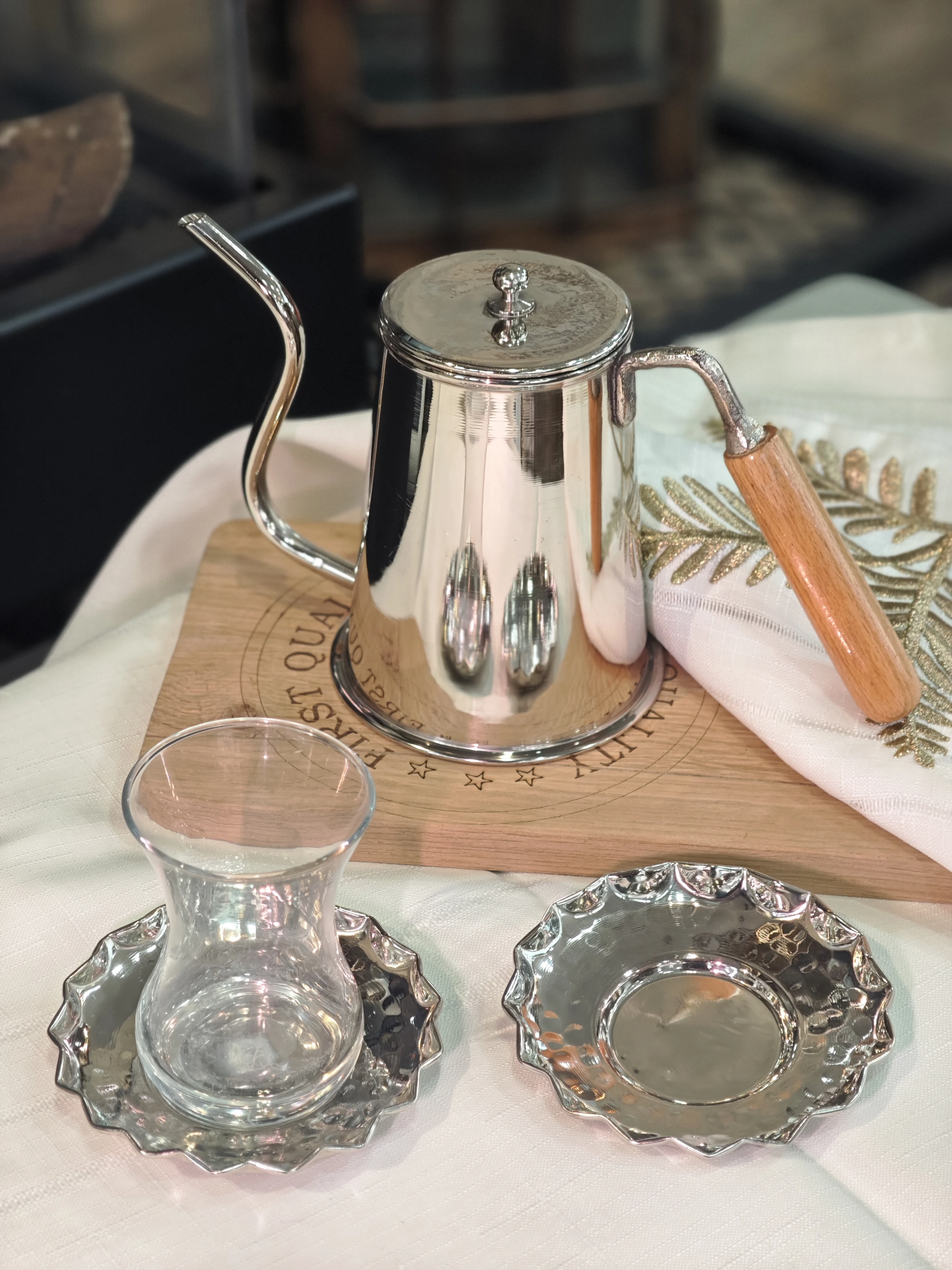 Zarif ve şık el yapımı bakır çay tabakları, Türk bakırcılık sanatının ince detaylarıyla bezenmiş, estetik ve işlevselliği bir arada sunan özel bir parçadır.