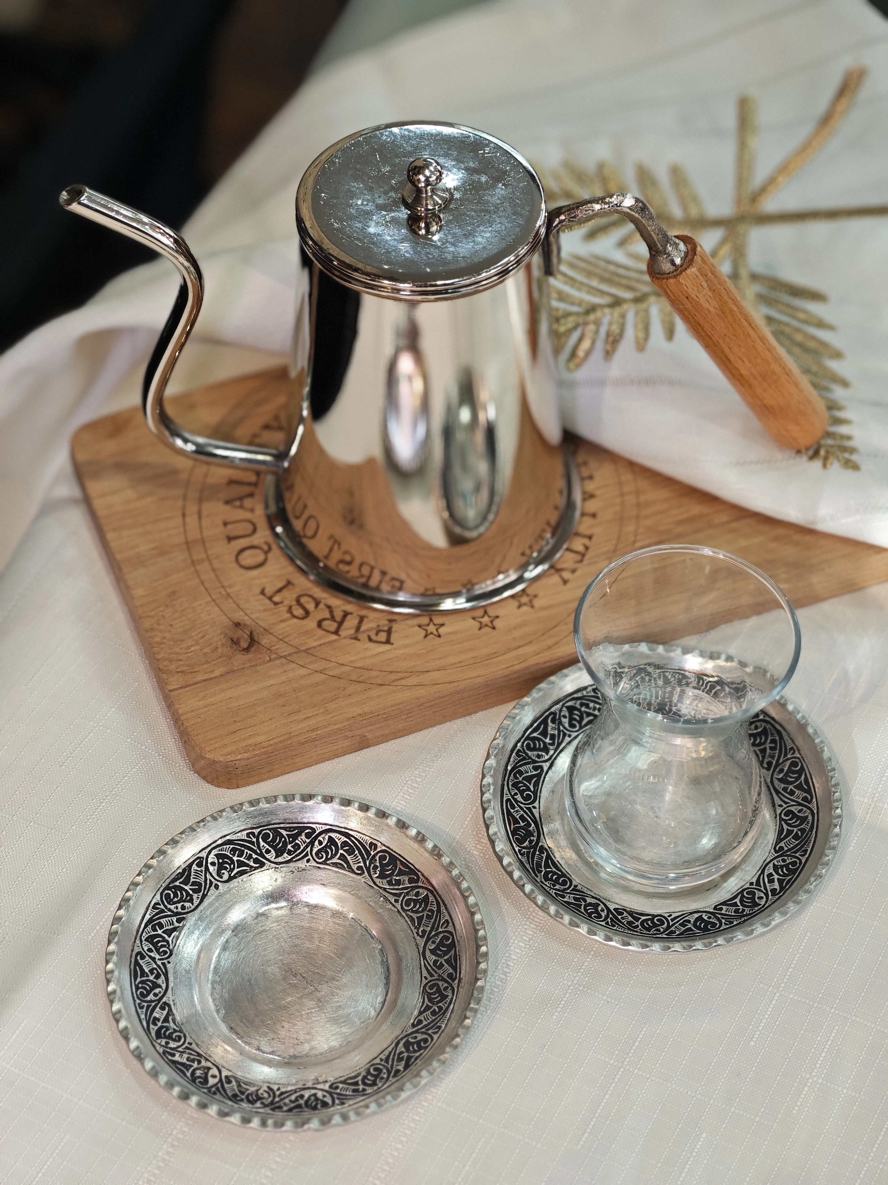 Zarif ve şık el yapımı bakır çay tabakları, Türk bakırcılık sanatının ince detaylarıyla bezenmiş, estetik ve işlevselliği bir arada sunan özel bir parçadır.