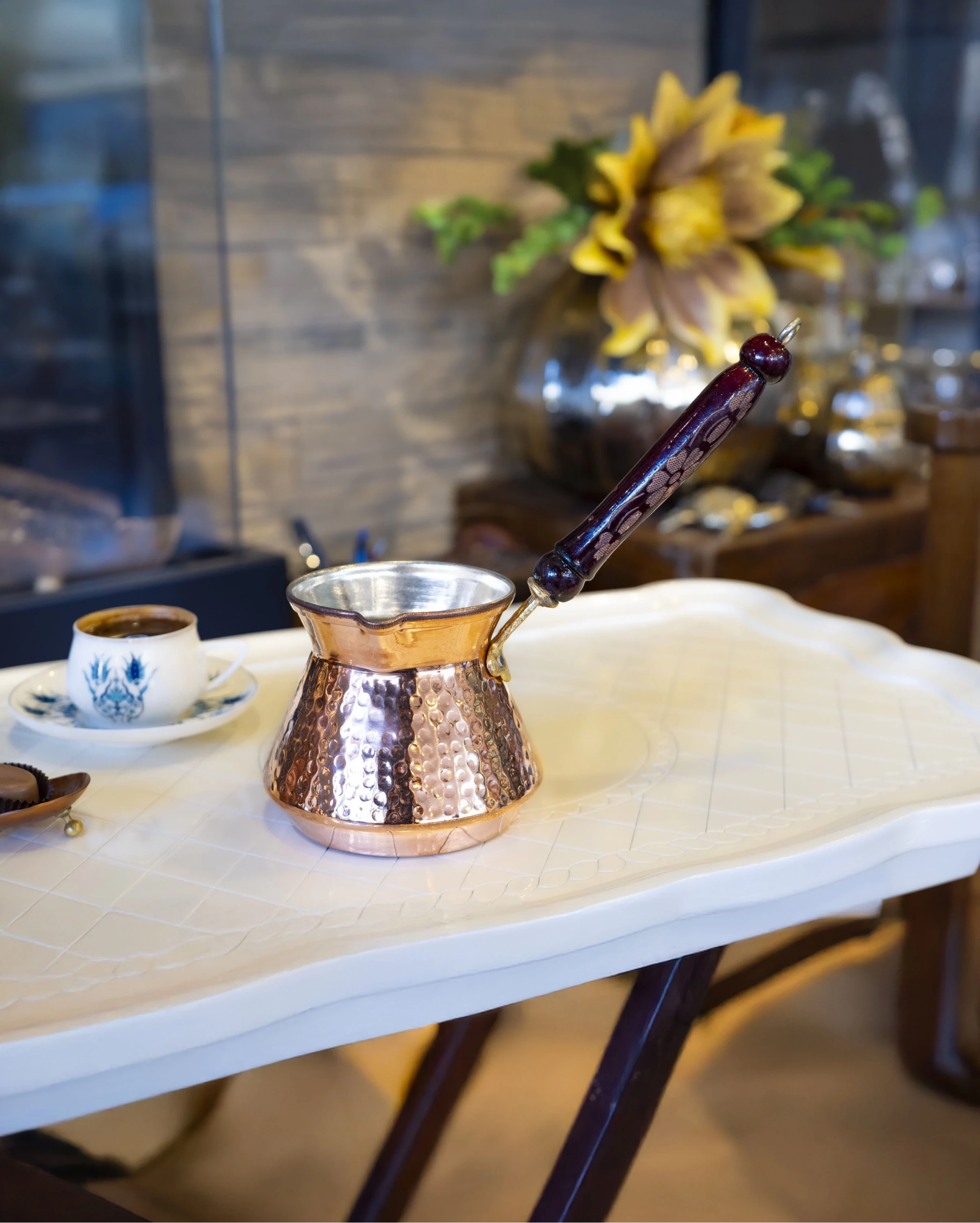 • Her bir cezve, geleneksel yöntemlerle ve büyük bir özenle elde şekillendirilmiştir, bu da her birinin eşsiz bir hikayesi ve karakteri olmasını sağlar.