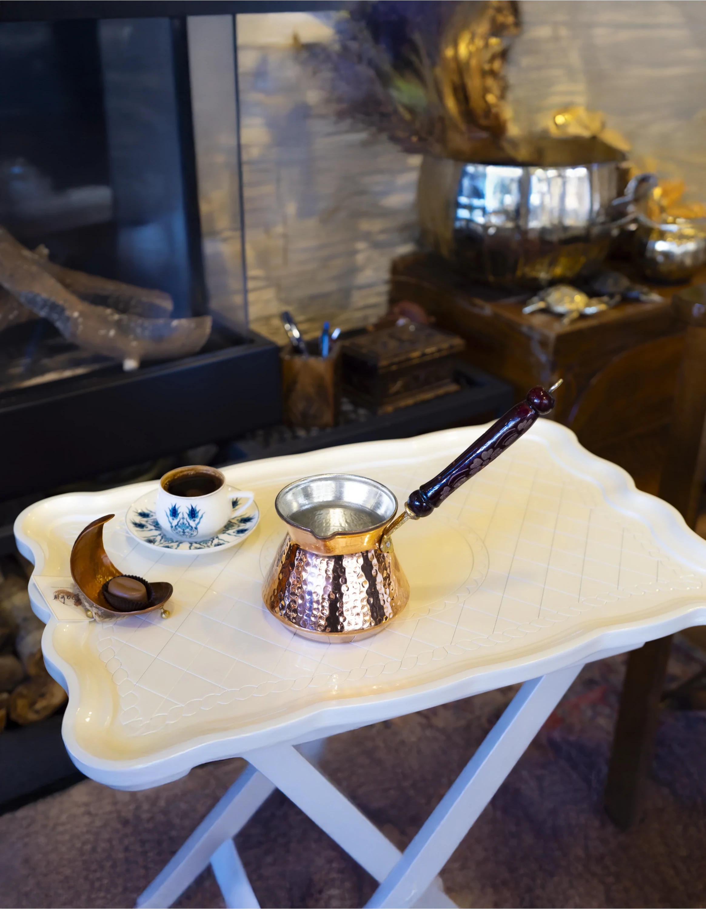 • Her bir cezve, geleneksel yöntemlerle ve büyük bir özenle elde şekillendirilmiştir, bu da her birinin eşsiz bir hikayesi ve karakteri olmasını sağlar.