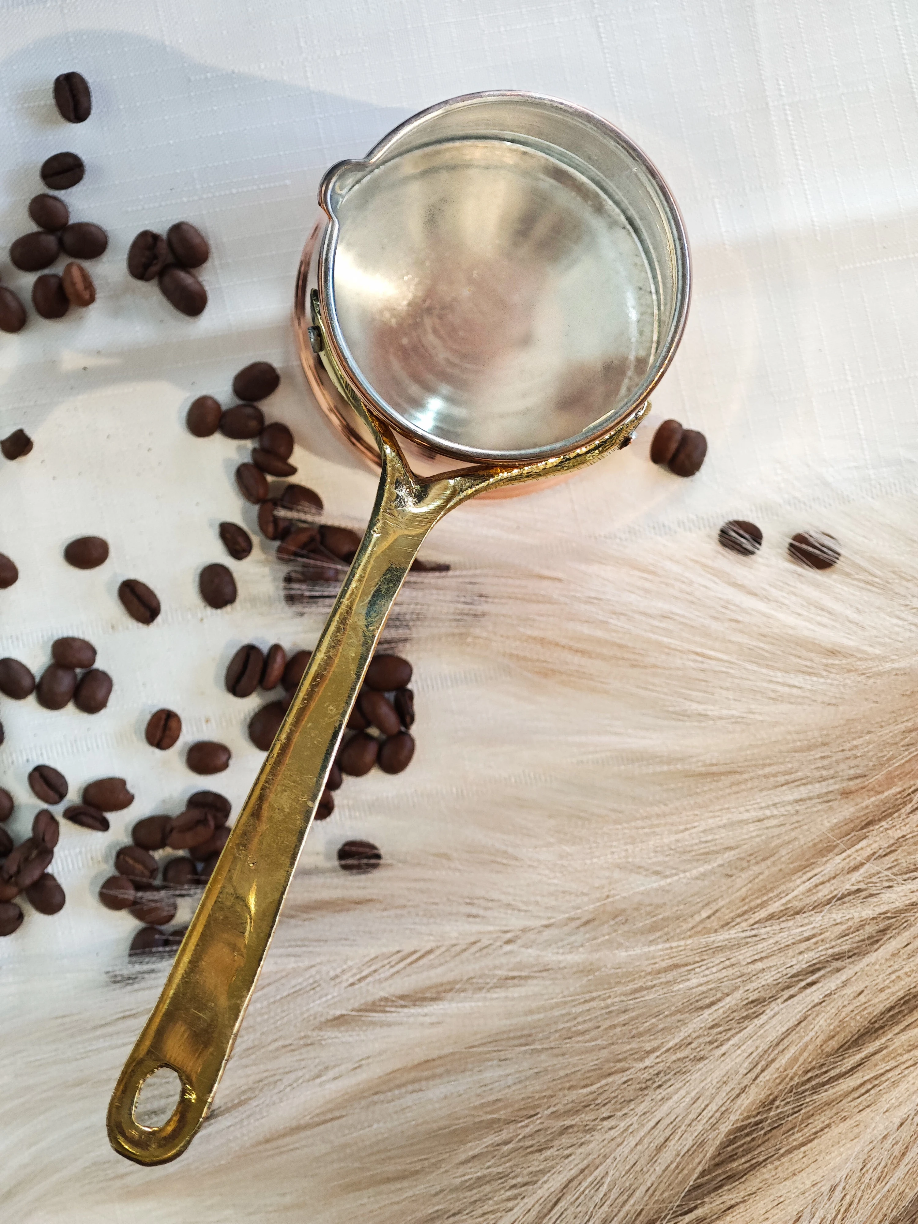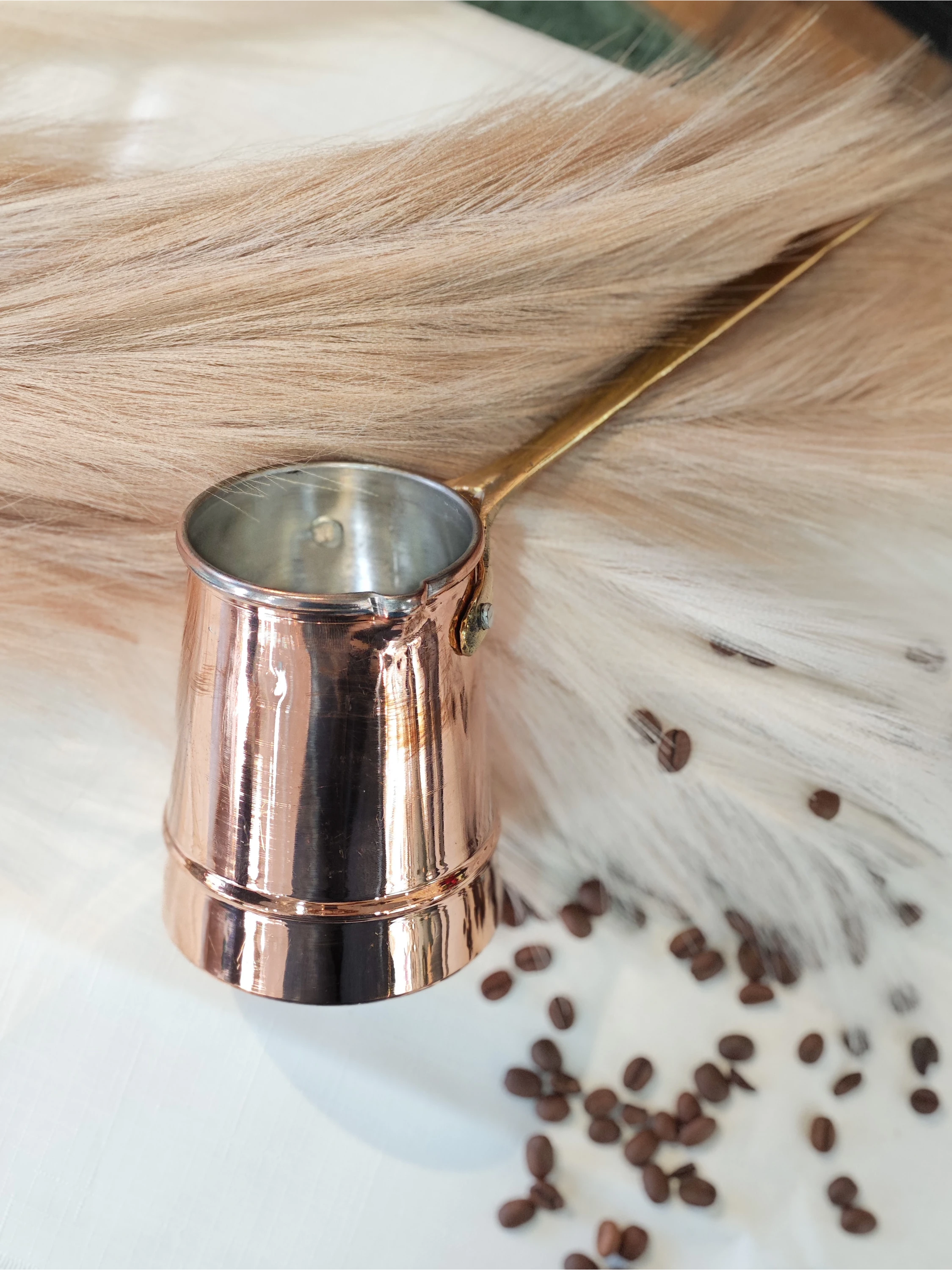 • Bu el yapımı bakır Türk kahvesi cezvesi ile kahve ritüelinizi bir üst seviyeye taşıyın. Yüksek kaliteli kalın ve saf bakırdan ustalıkla şekillendirilmiş olan cezvemiz, eşsiz lezzetler yaratmanıza olanak tanır. Geleneksel yöntemlerle üretilen bu cezve, her fincan Türk kahvesini mükemmel bir şekilde pişirmenizi sağlar.