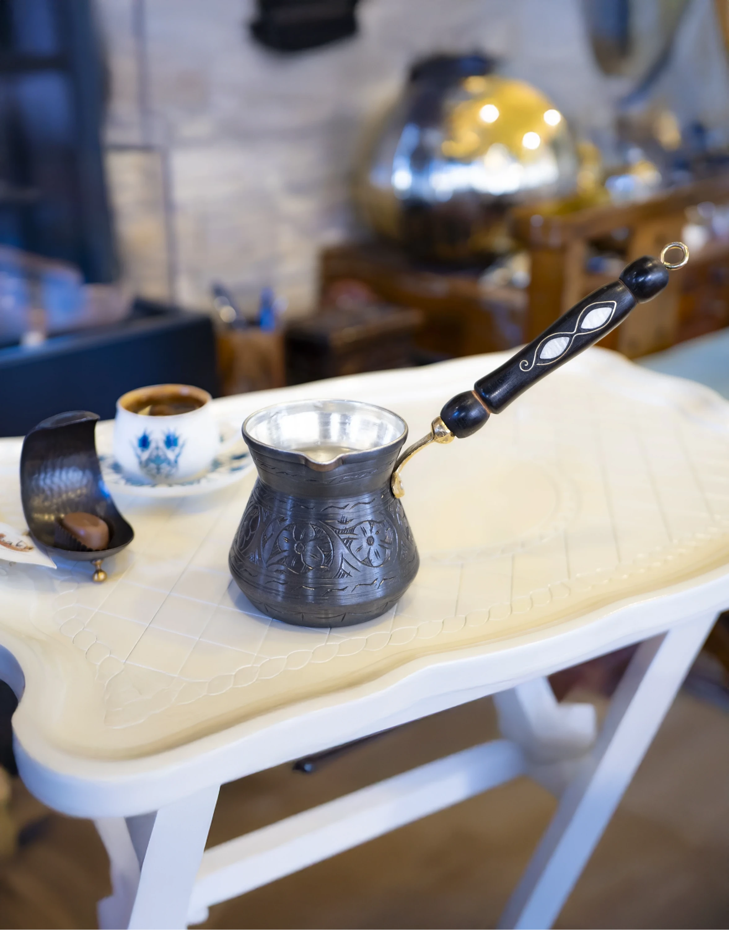Her bir cezve, geleneksel yöntemlerle ve büyük bir özenle elde şekillendirilmiştir, bu da her birinin eşsiz bir hikayesi ve karakteri olmasını sağlar.