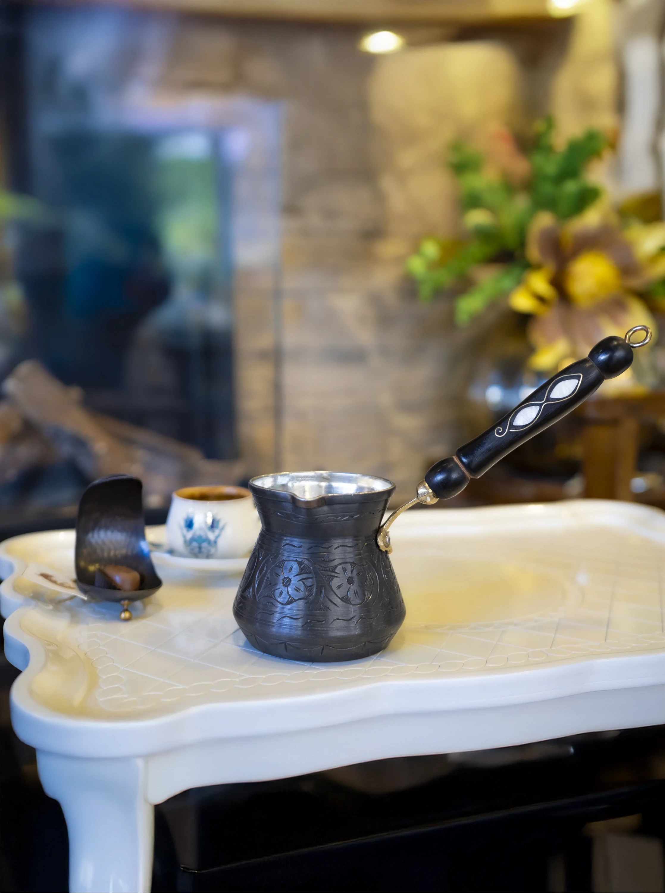 Her bir cezve, geleneksel yöntemlerle ve büyük bir özenle elde şekillendirilmiştir, bu da her birinin eşsiz bir hikayesi ve karakteri olmasını sağlar.