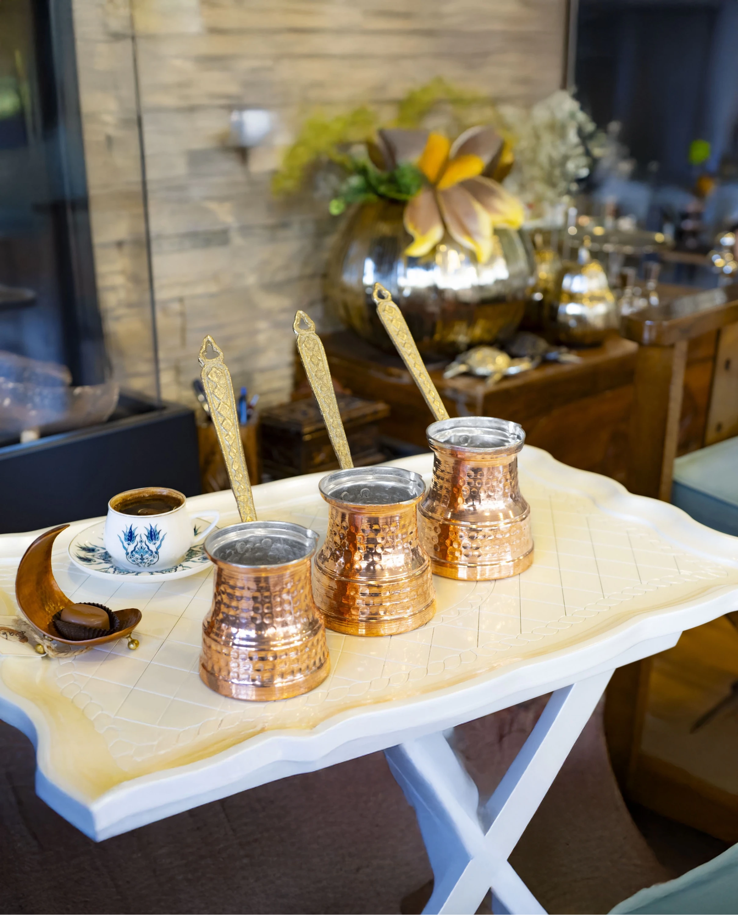 • Her bir cezve, geleneksel yöntemlerle ve büyük bir özenle elde şekillendirilmiştir, bu da her birinin eşsiz bir hikayesi ve karakteri olmasını sağlar.