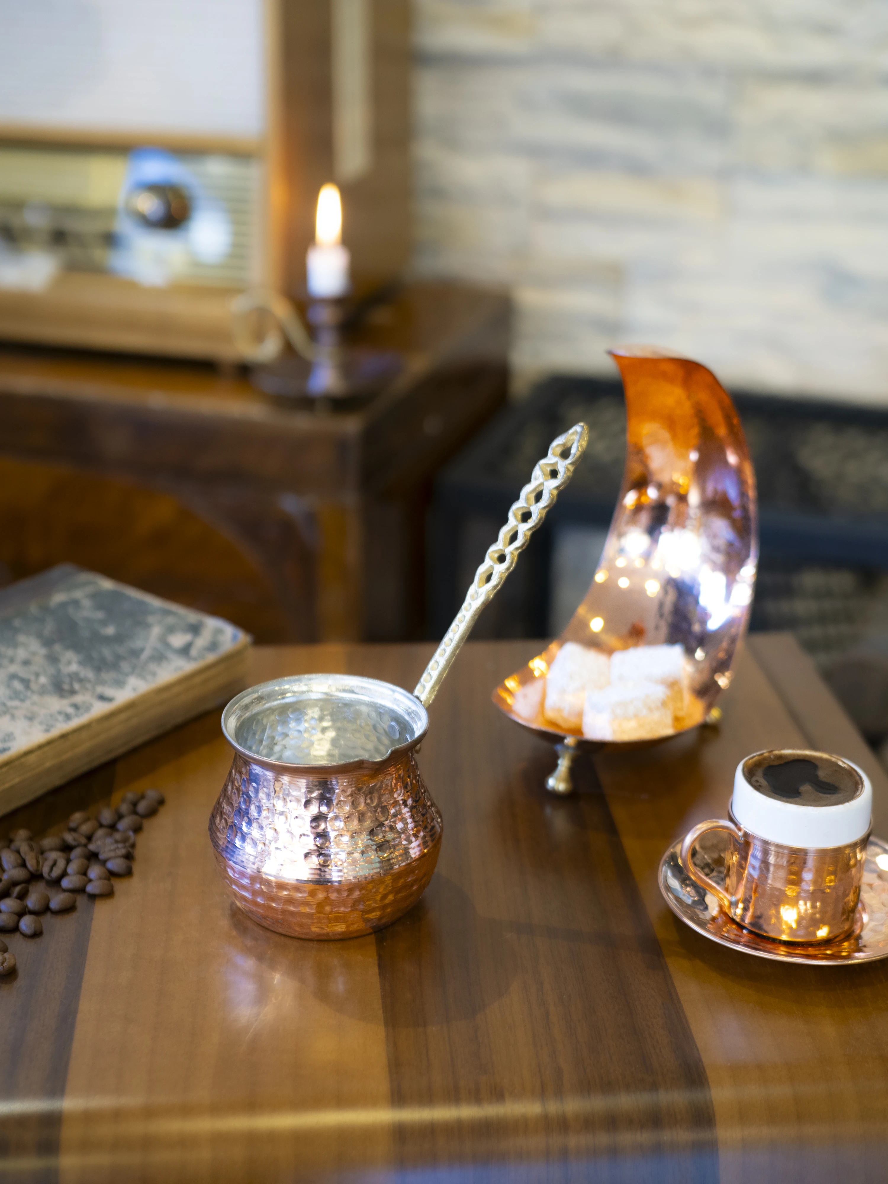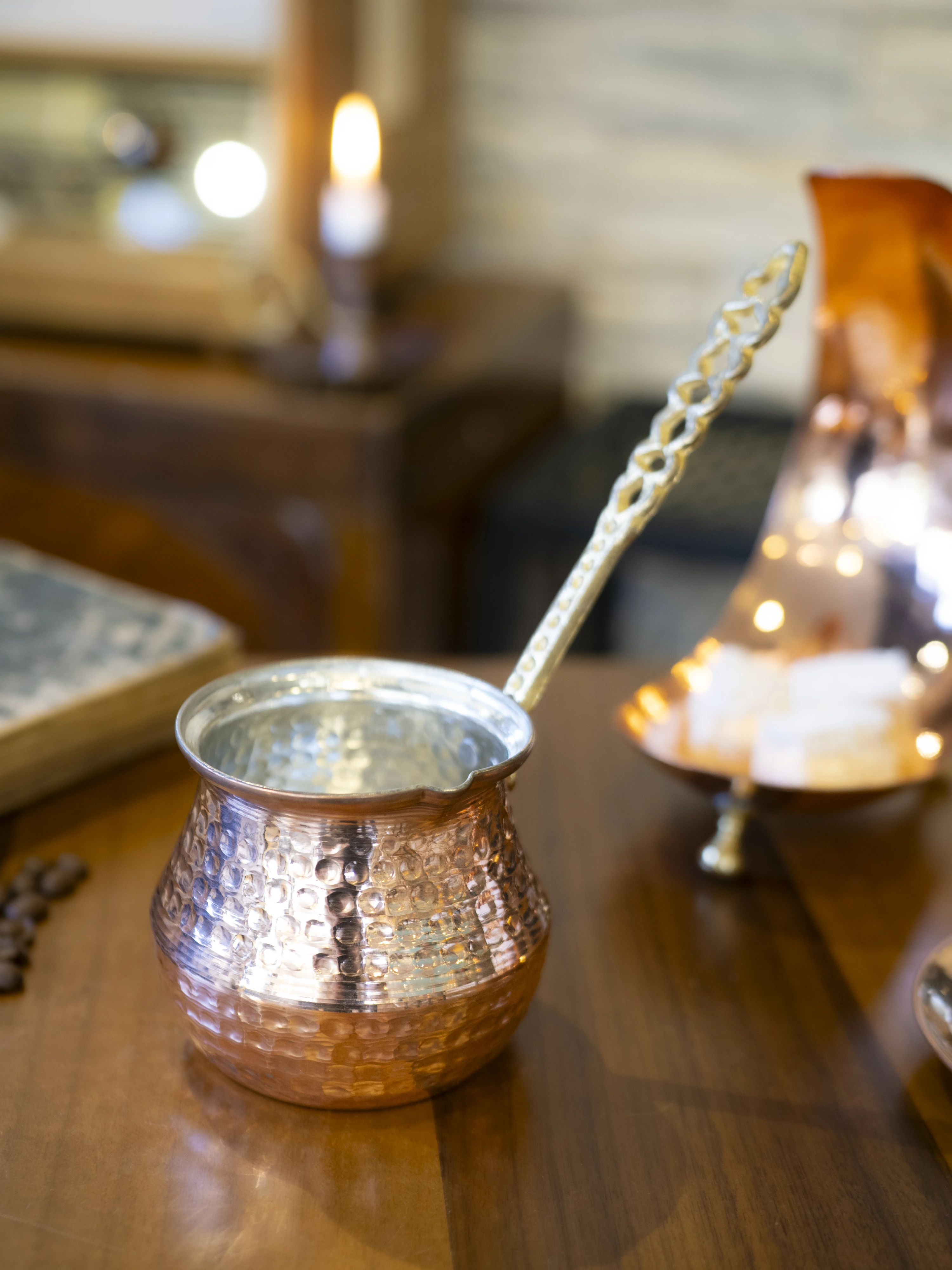 Her bir cezve, geleneksel yöntemlerle ve büyük bir özenle elde şekillendirilmiştir, bu da her birinin eşsiz bir hikayesi ve karakteri olmasını sağlar.