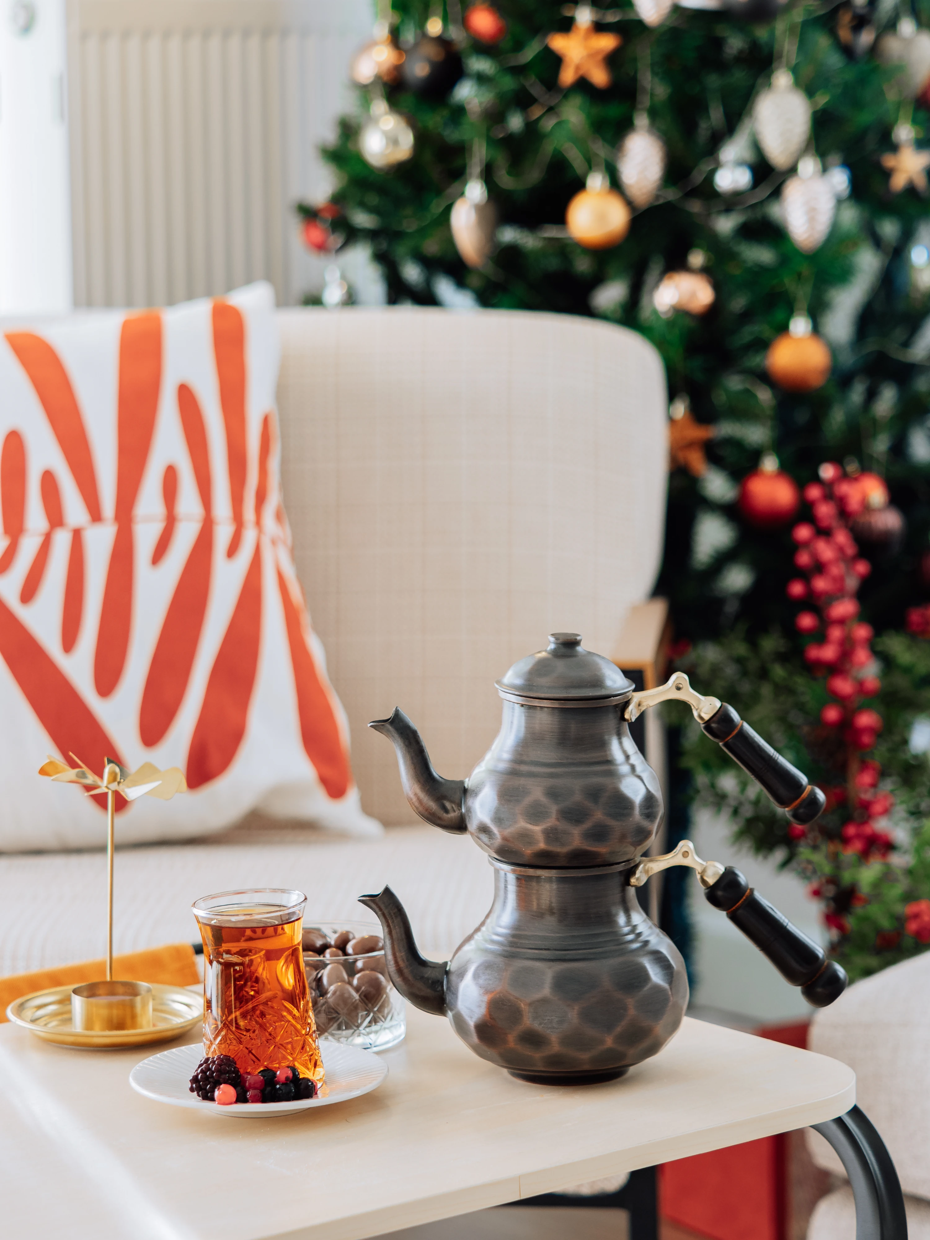İç yüzeyi, gıda güvenliği standartlarını karşılayacak şekilde özenle kalay kaplanmıştır.,İç yüzeydeki kalay kaplama, yiyeceklerinizin doğal lezzetlerini korurken, bakırın antimikrobiyal özellikleri sayesinde güvenli ve hijyenik bir pişirme sunar. hem sağlığınızı korur hem de çayınızın saf lezzetini garanti eder.