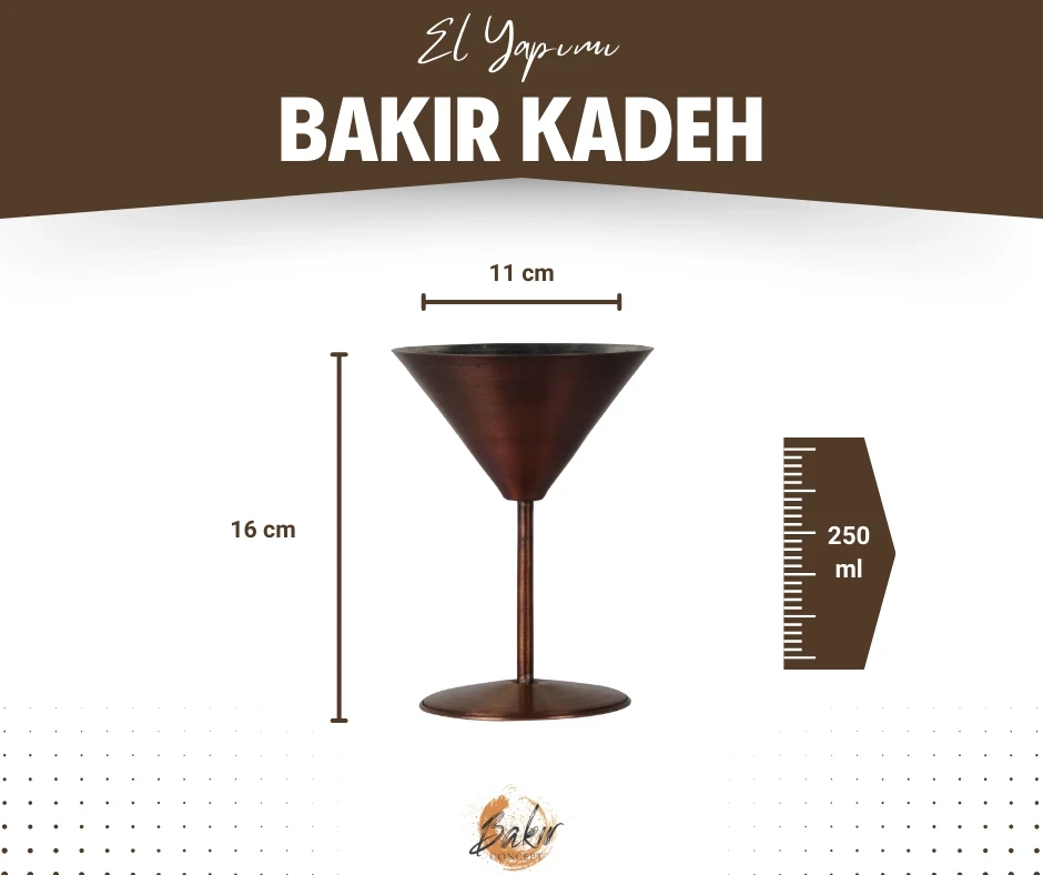 Bakır Kadeh Martini Düz Model Oksit Renk
