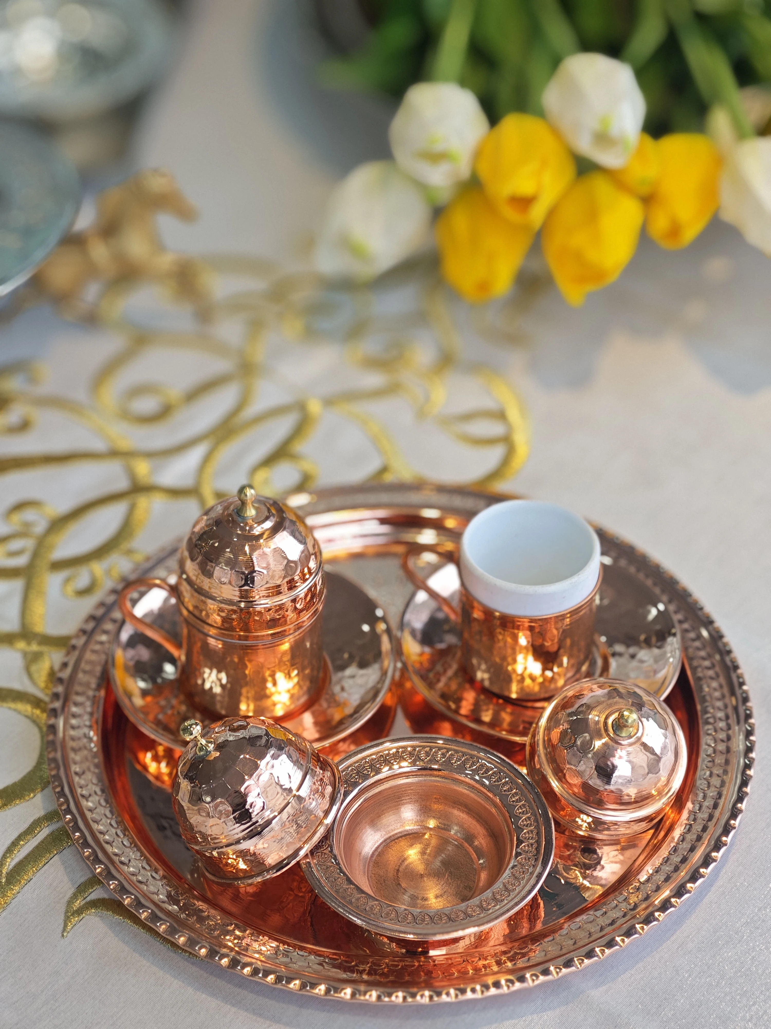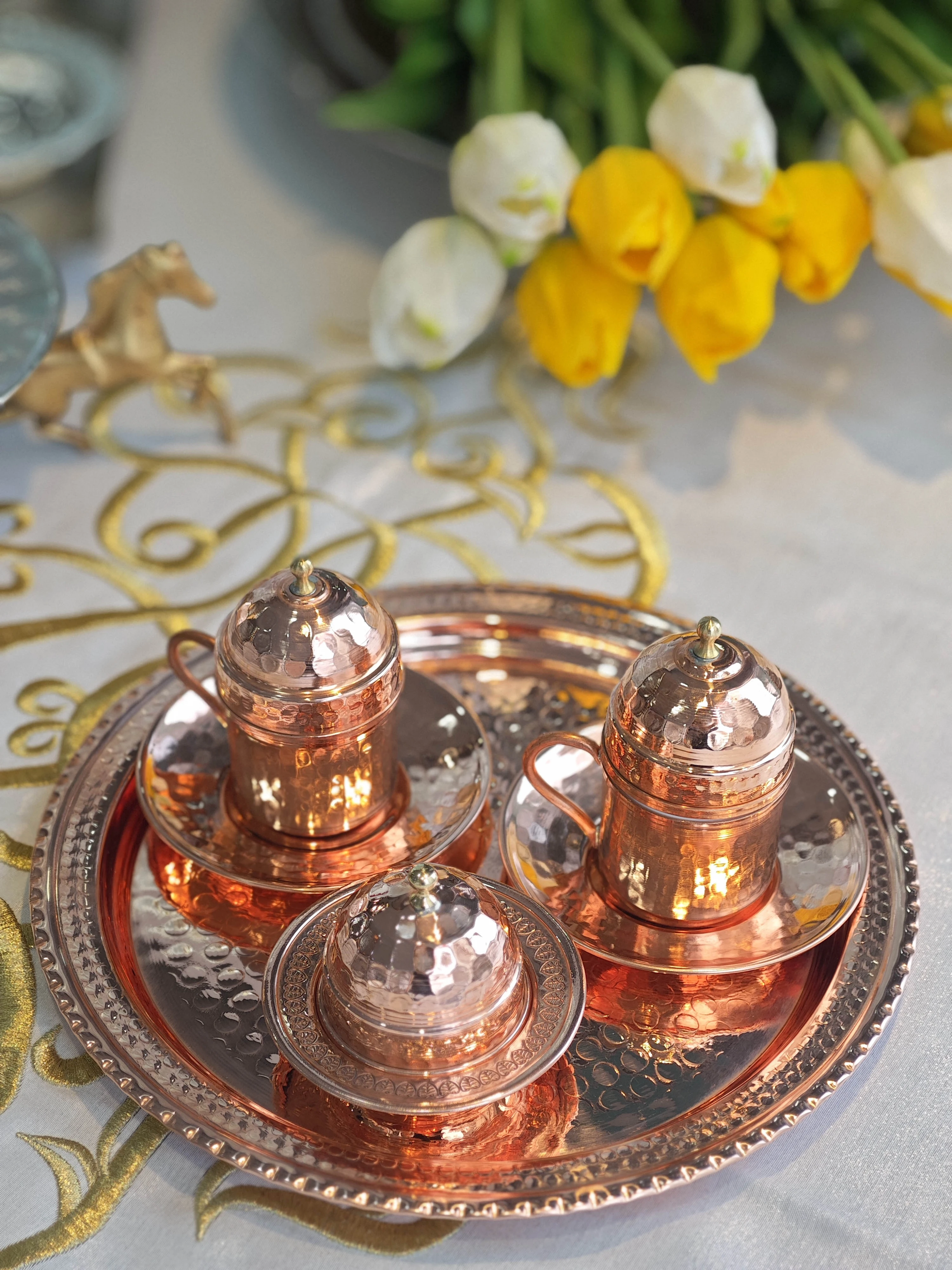 Bakır fincanlarımızla içecek keyfinizi geçmişten gelen zarafetle buluşturun. %100 saf bakırdan üretilen bu fincanlar, hem şıklığı hem de sağlığa faydalı özellikleriyle öne çıkıyor.