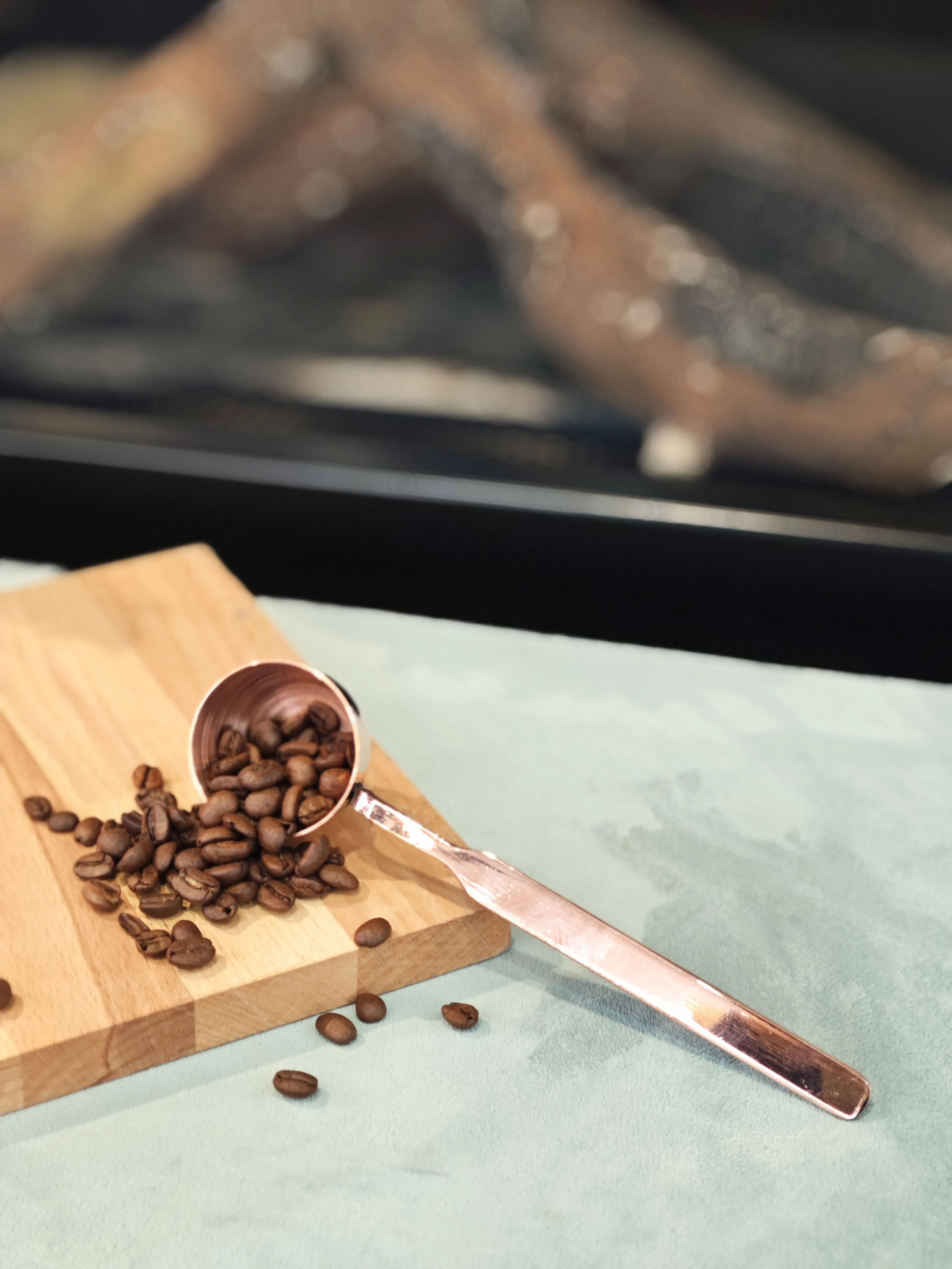 Geleneksel zanaatkarlığın modern bir yorumu olan el yapımı bakır kahve ölçeği, mükemmel bir fincan kahve demlemenin en önemli adımlarından biridir. Hassas ölçümler yaparak kahve tutkunlarının istedikleri lezzete ulaşmalarını sağlar.