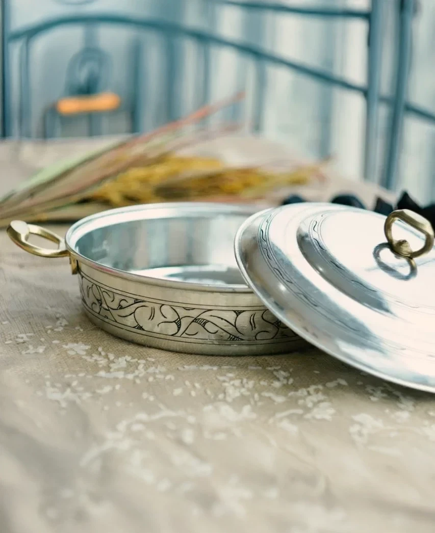Klasik ve zarif tasarımıyla bu tencere, mutfağınıza lüks bir dokunuş katar. El işçiliği ile detaylandırılan desenler ve parlak yüzey, bu tencereyi sadece bir pişirme aracı değil, aynı zamanda bir dekoratif parça haline getirir.