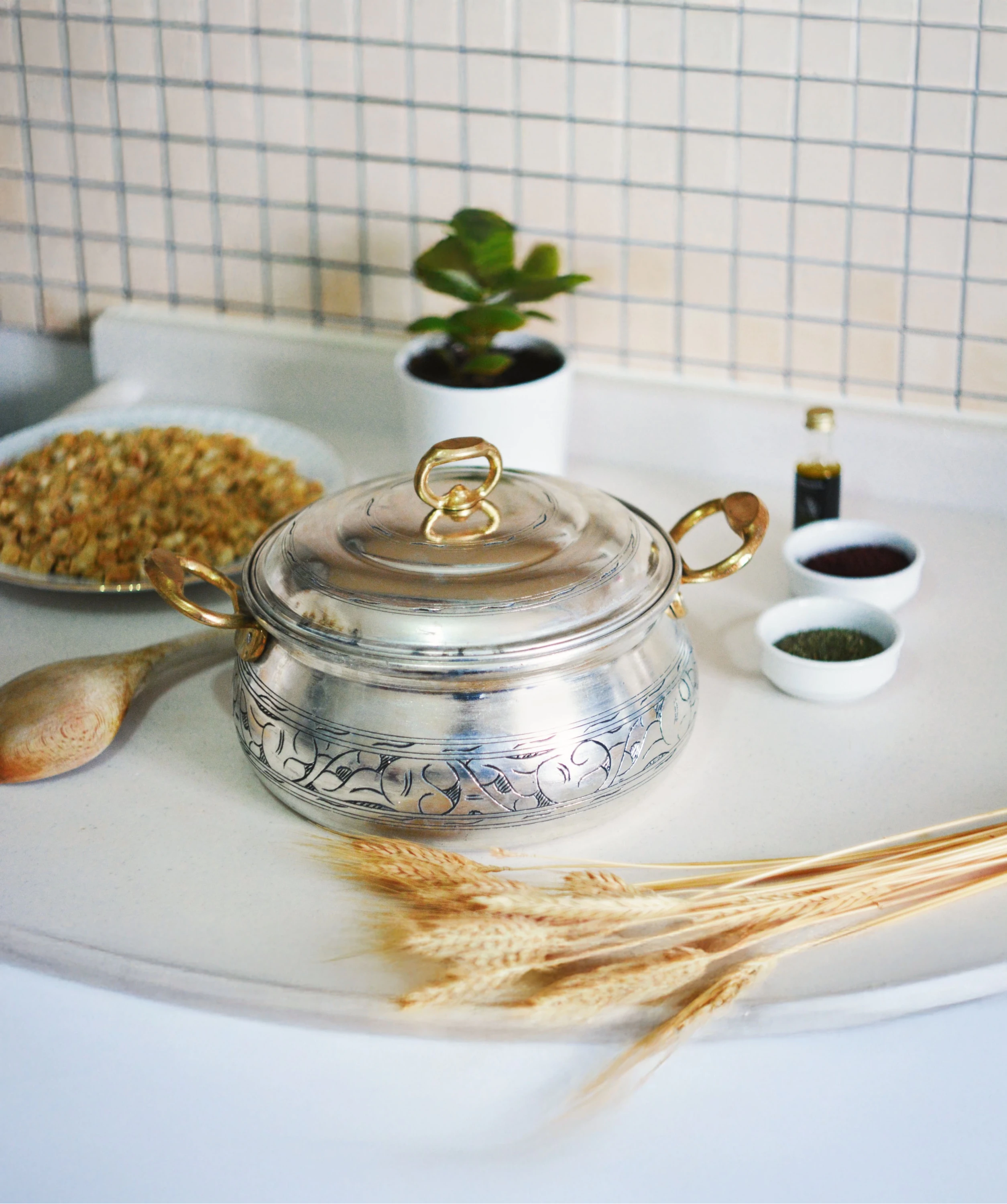 Bu el yapımı bakır tencere, mükemmel pişirme deneyimi sunmak için tasarlanmıştır. Yüksek kaliteli saf bakırdan üretilmiş olup, eşsiz ısı dağılımı ve ısı saklama özellikleri ile yemeklerinizi her zaman mükemmel pişirmenizi sağlar.