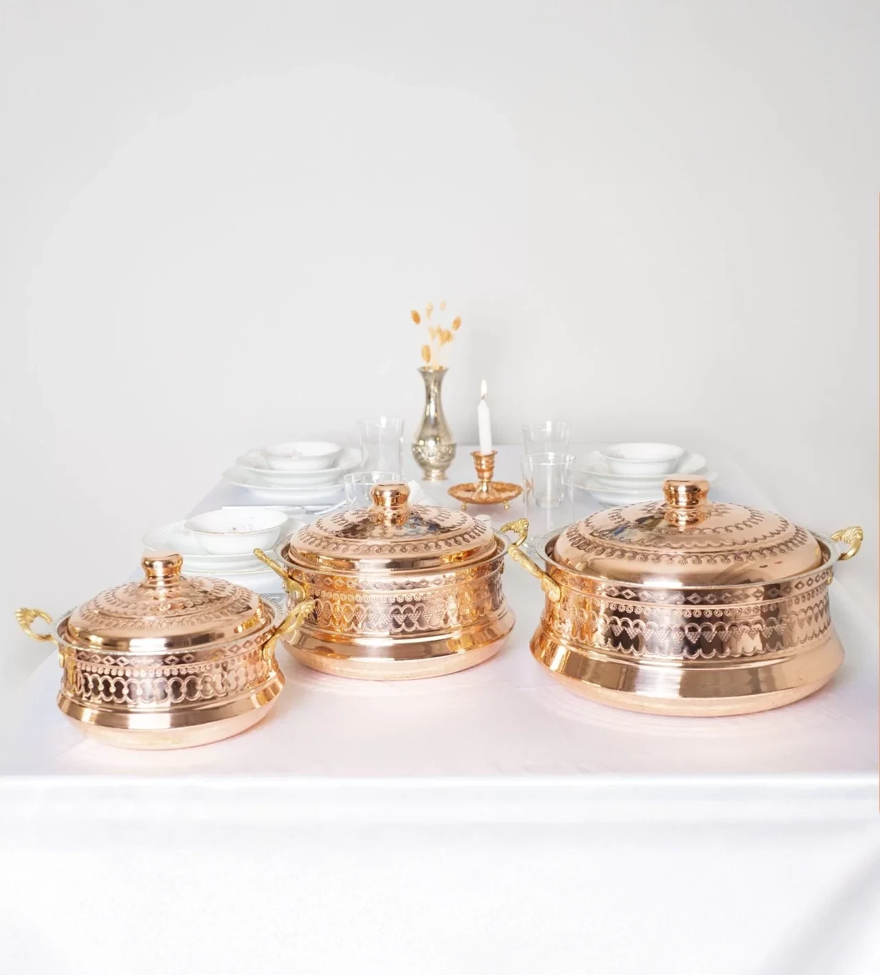 BAKIR TENCERE SETİ MARDİN İŞLEMELİ MODEL BAKIR RENK