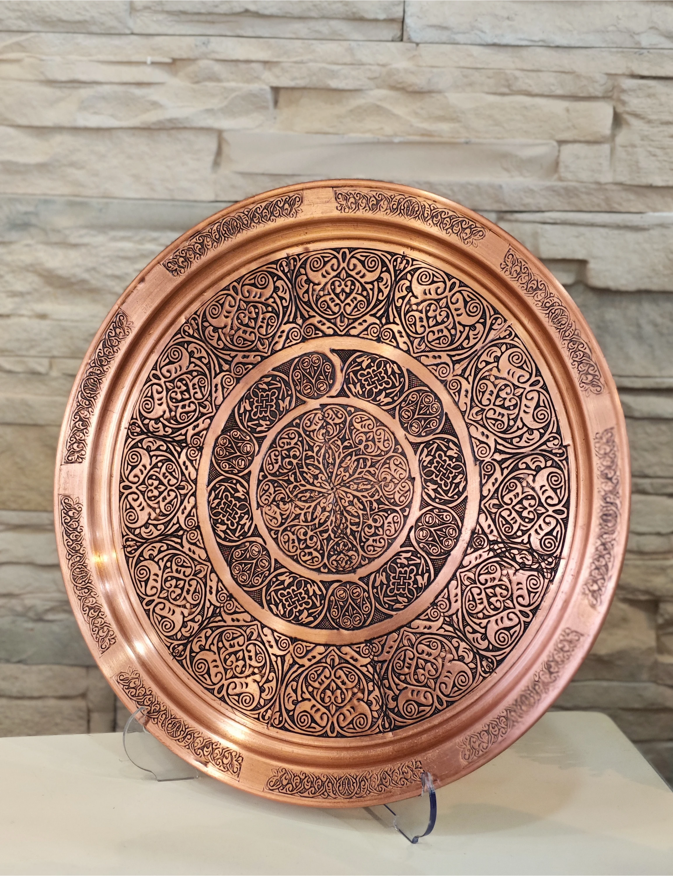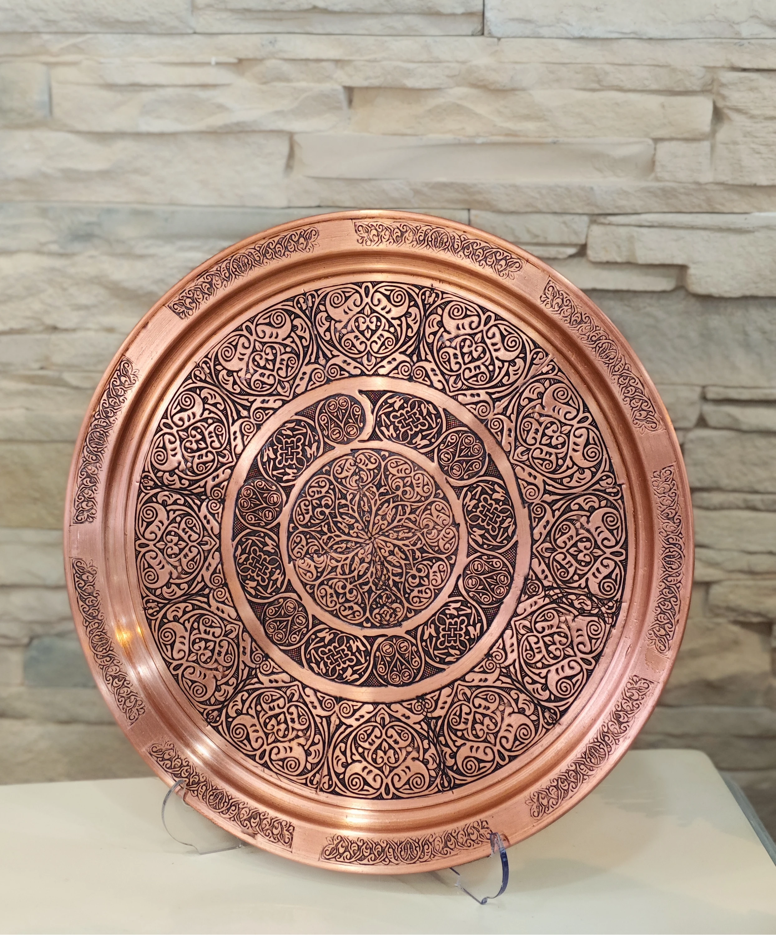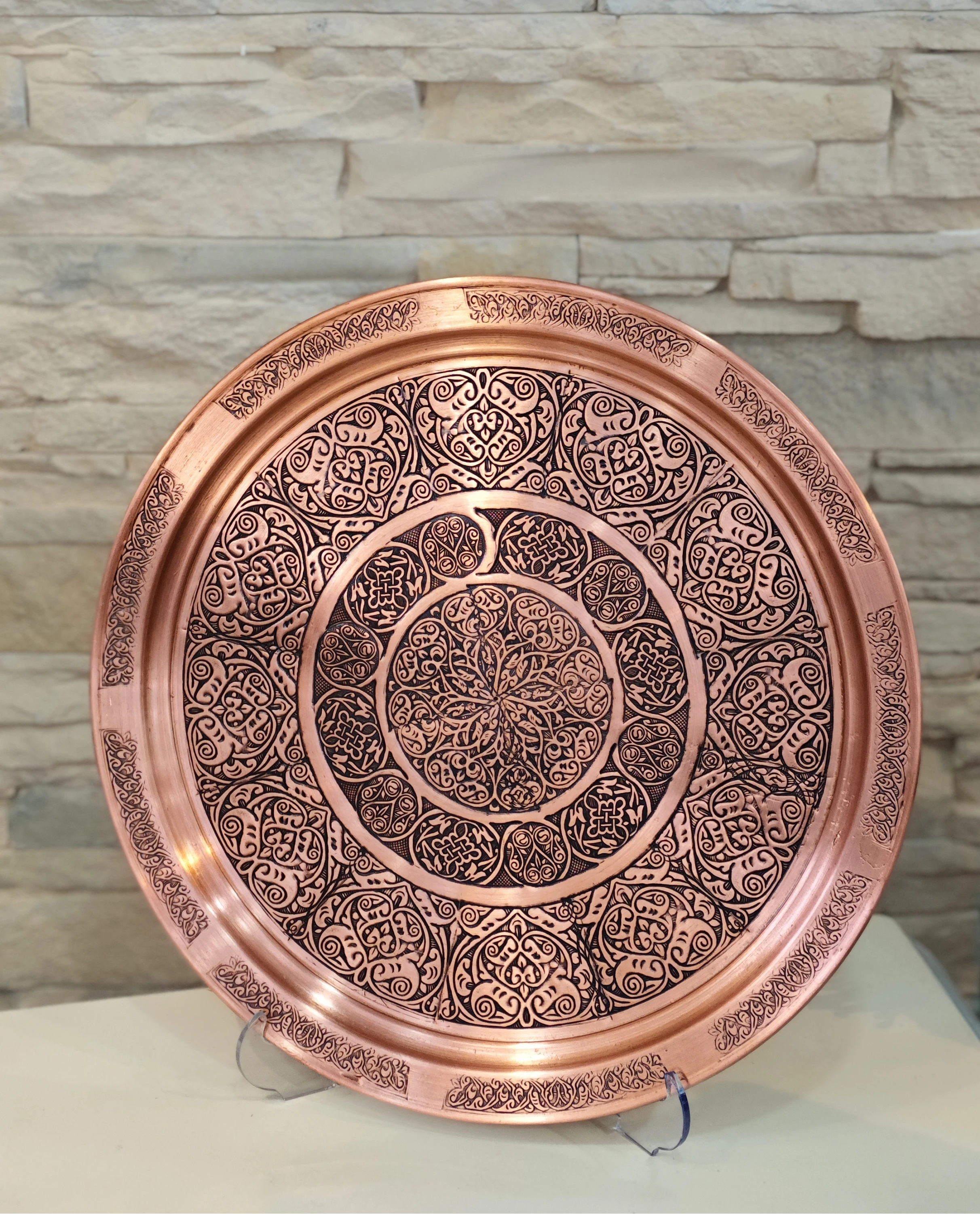 BAKIR TEPSİ BASKI İŞLEMELİ MODEL MAT BAKIR RENK TEPSİ 33 CM