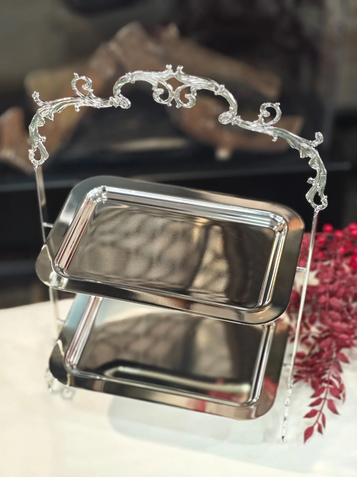 Pirinç üzeri gümüş kaplama sunum ürünlerimiz, sofralarınıza sofistike bir dokunuş katarken, aynı zamanda özel anlarınıza unutulmaz bir atmosfer sunmak için ideal bir seçenektir. En özel anlarınızı şıklık ve zarafetle taçlandırmak için bu ürünlerimiz sizleri bekliyor.