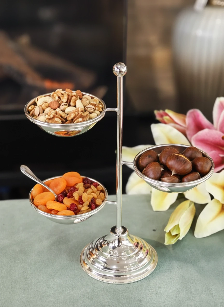 Pirinç üzeri gümüş kaplama sunum ürünlerimiz, sofralarınıza sofistike bir dokunuş katarken, aynı zamanda özel anlarınıza unutulmaz bir atmosfer sunmak için ideal bir seçenektir. En özel anlarınızı şıklık ve zarafetle taçlandırmak için bu ürünlerimiz sizleri bekliyor.