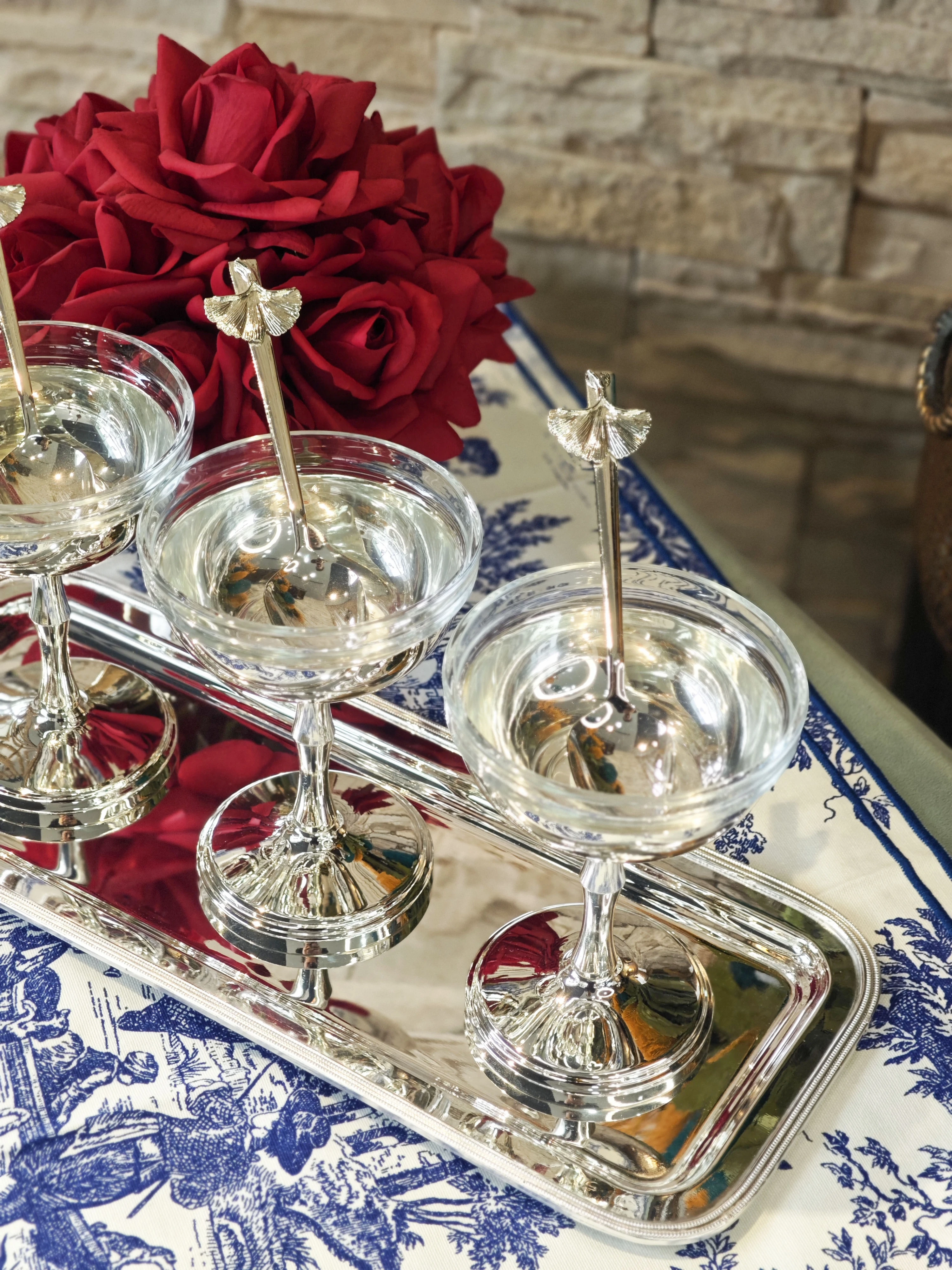 Dayanıklı pirinç üzerine gümüş kaplama yapılmıştır. Gümüş kaplama, ürüne zarif bir parlaklık kazandırırken uzun ömürlü kullanım sağlar.