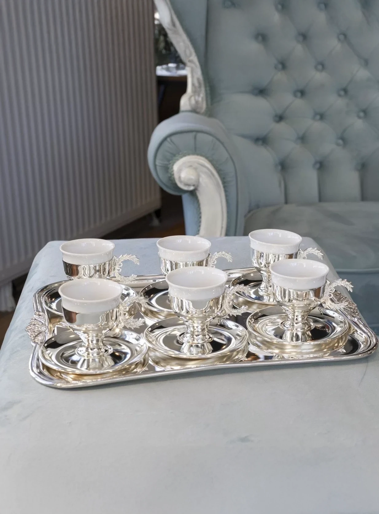 Pirincin dayanıklılığı ve gümüşün zarafeti, bu ürünlerimizin hem görsel hem de pratik anlamda üstünlüğünü ortaya koyuyor. Özenle seçilmiş pirinç malzeme, sağlamlığı ve uzun ömürlü kullanımıyla dikkat çekerken, incelikle işlenmiş gümüş kaplama detaylar ise her bir ürüne özgü bir lüks ve ihtişam katıyor.