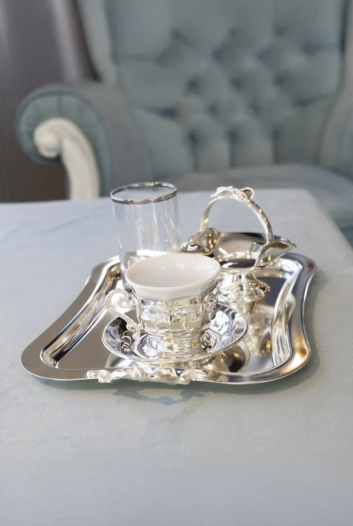 GÜMÜŞ KAPLAMA FİNCAN SETİ KÖŞELİ VE KABARTMA MOTİFLİ MODEL
