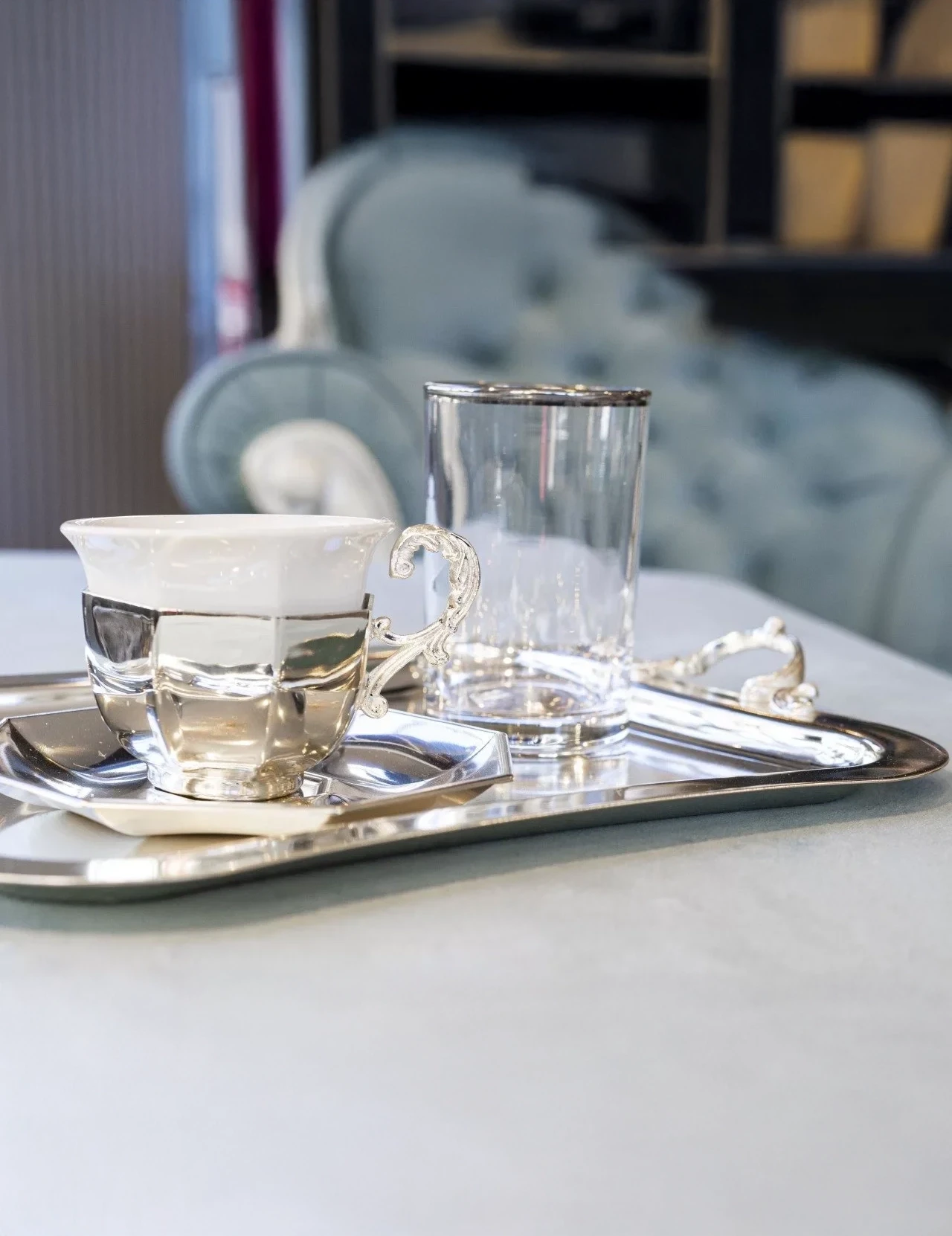 GÜMÜŞ KAPLAMA FİNCAN SETİ KÖŞELİ MODEL