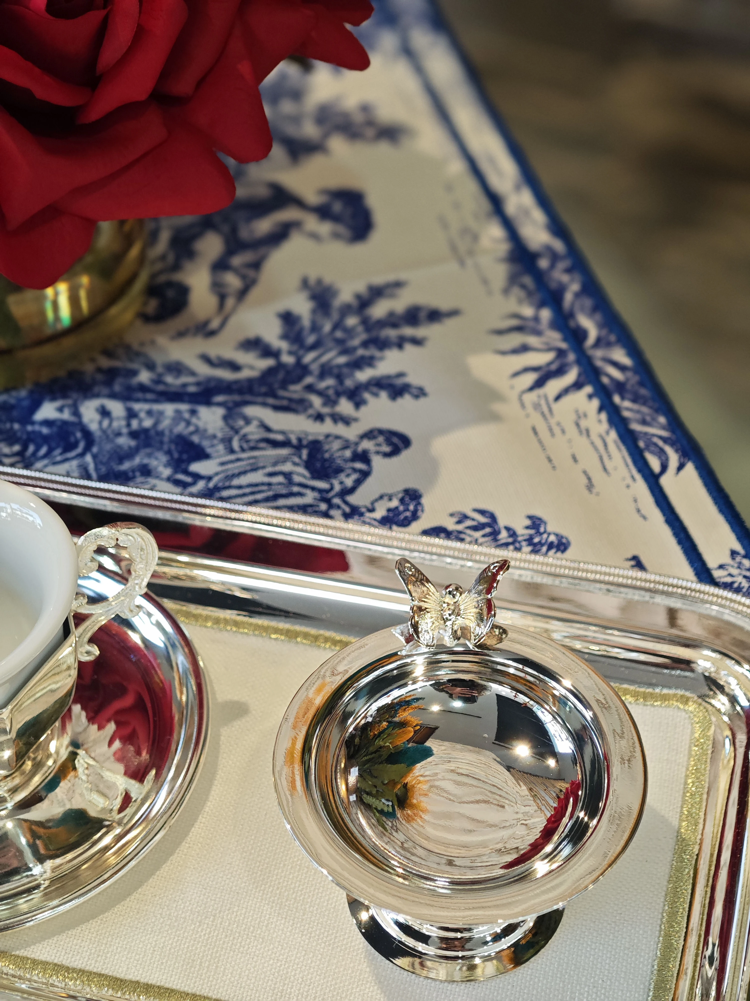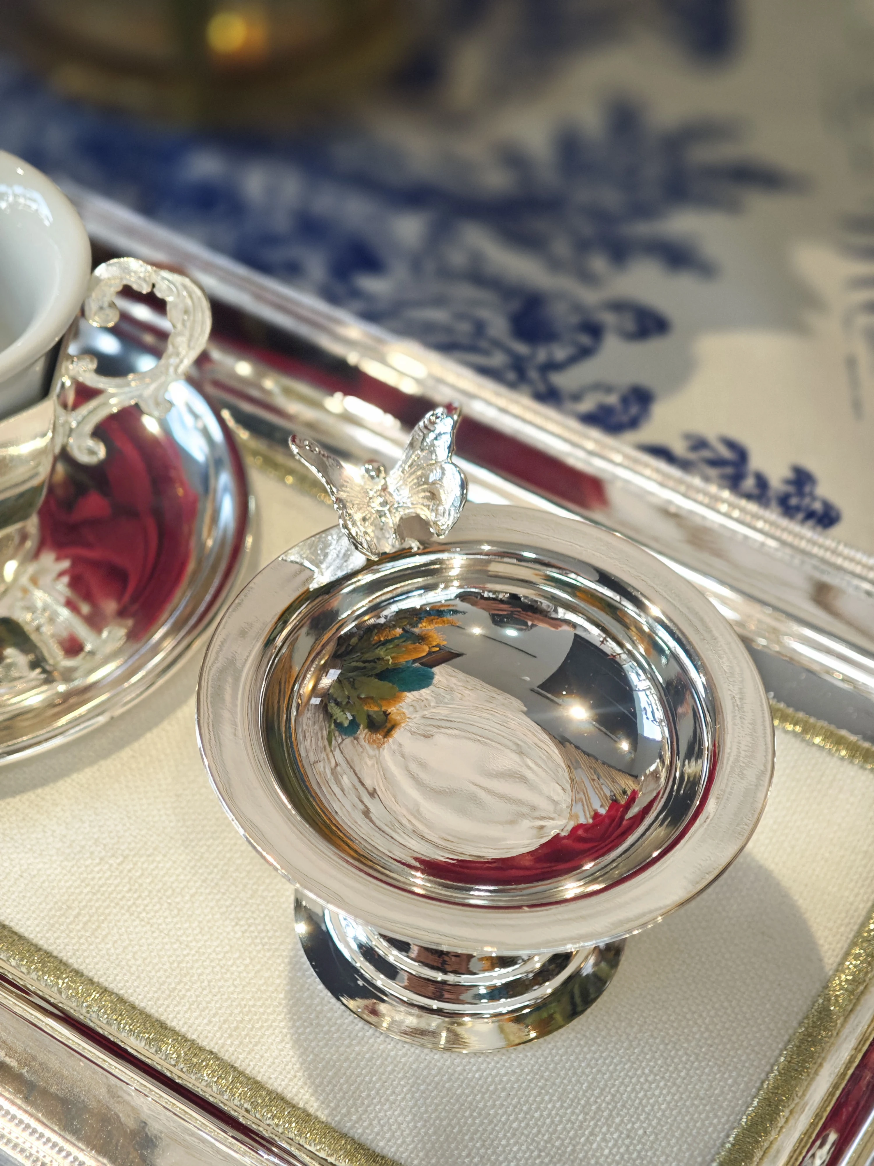 GÜMÜŞ KAPLAMA LOKUMLUK BOMBELİ FORM KELEBEK DETAYLI 2 ADET