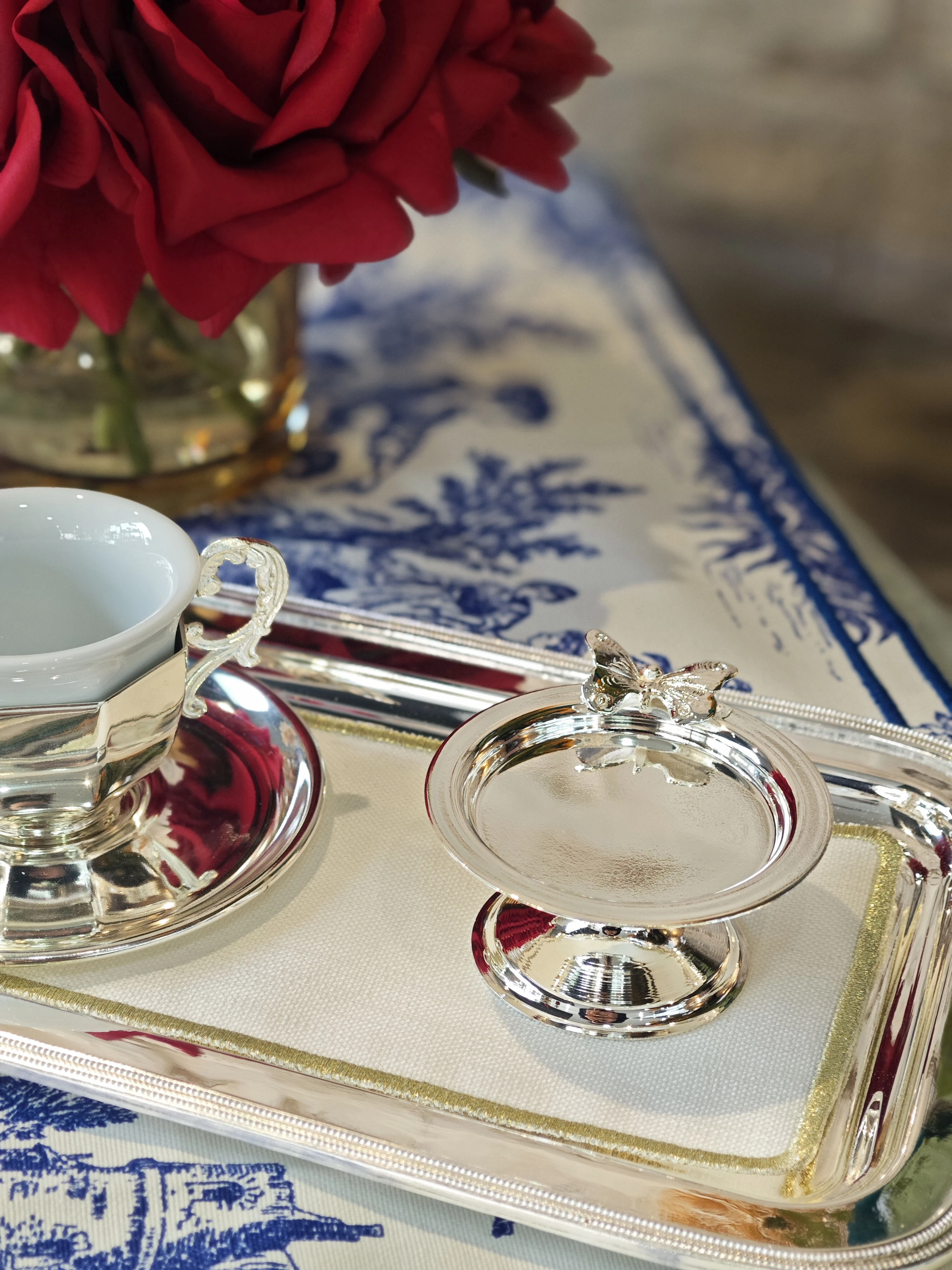Pirinç üzeri gümüş kaplama lokumluk, geleneksel Türk kültürünün zarafetini ve el işçiliğinin inceliklerini bir araya getiriyor.