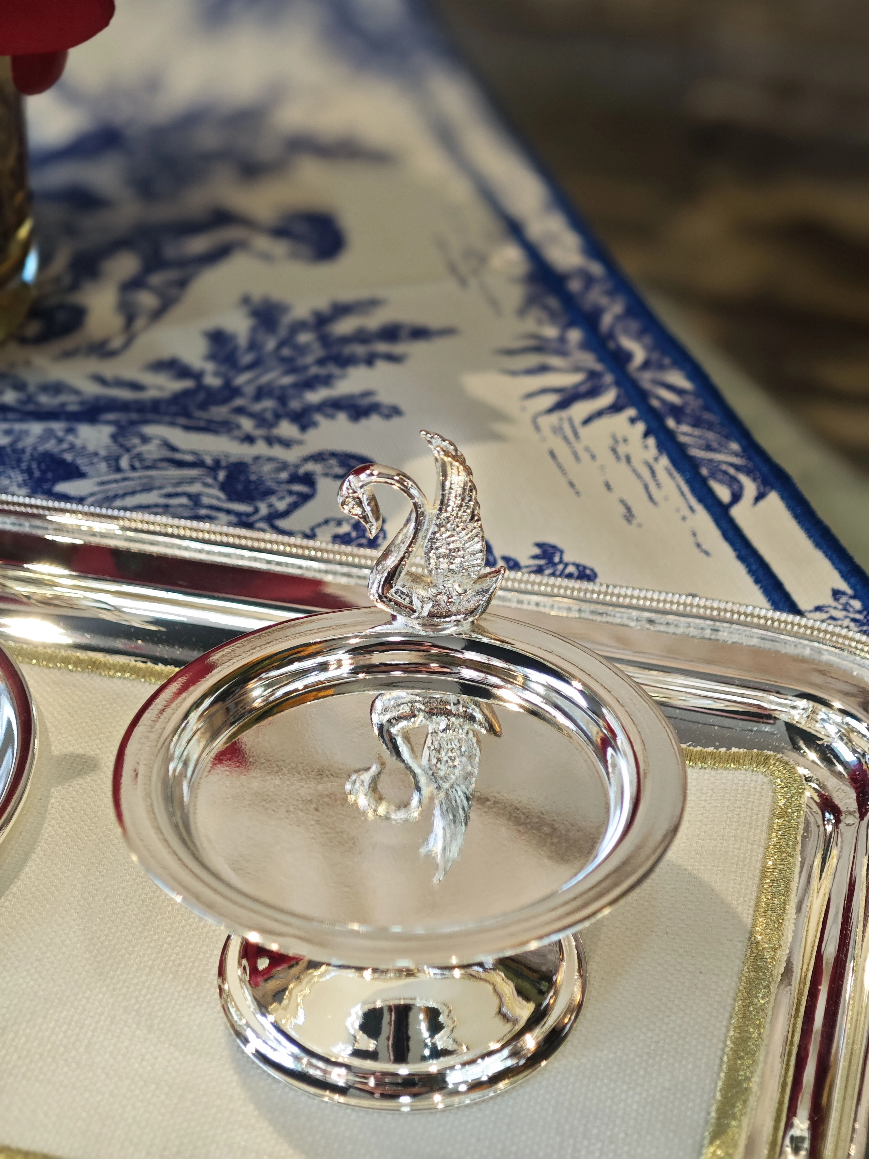 GÜMÜŞ KAPLAMA LOKUMLUK KUĞU DETAYLI DÜZ FORM 1 ADET
