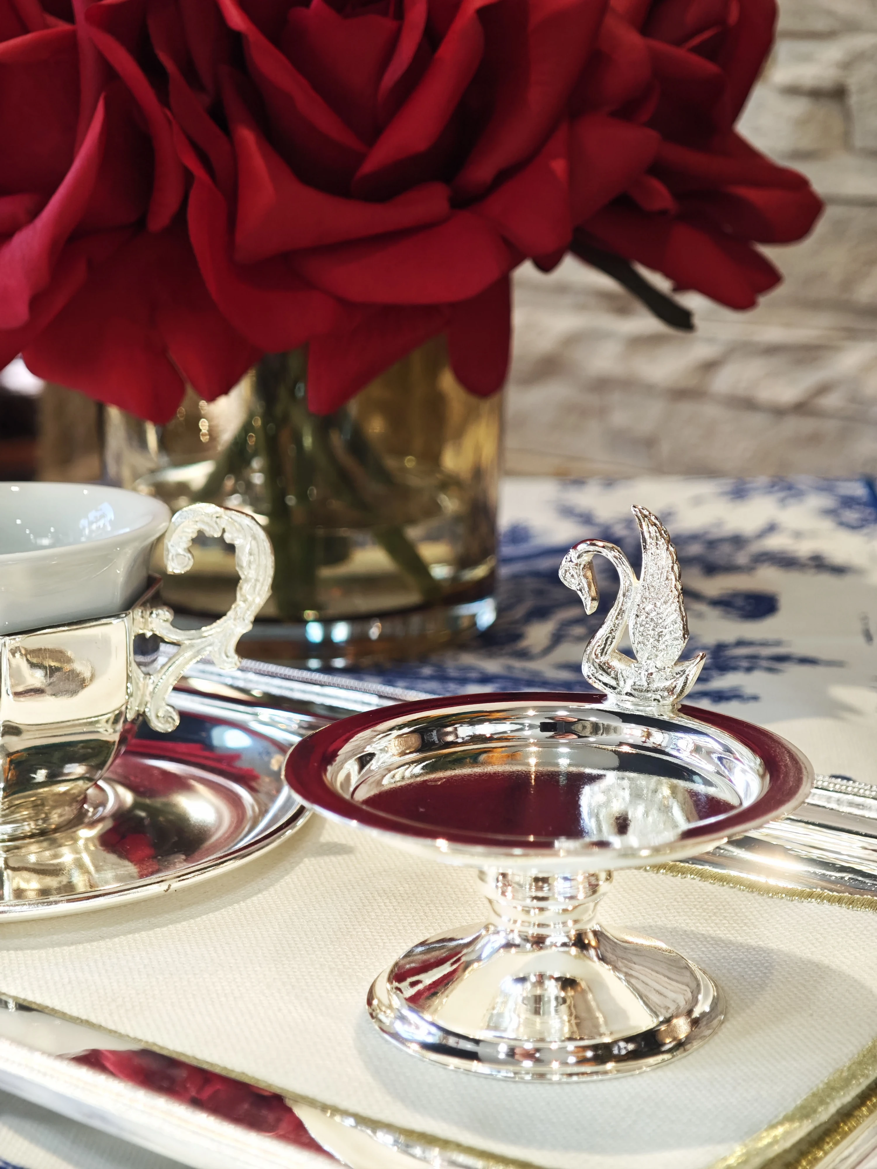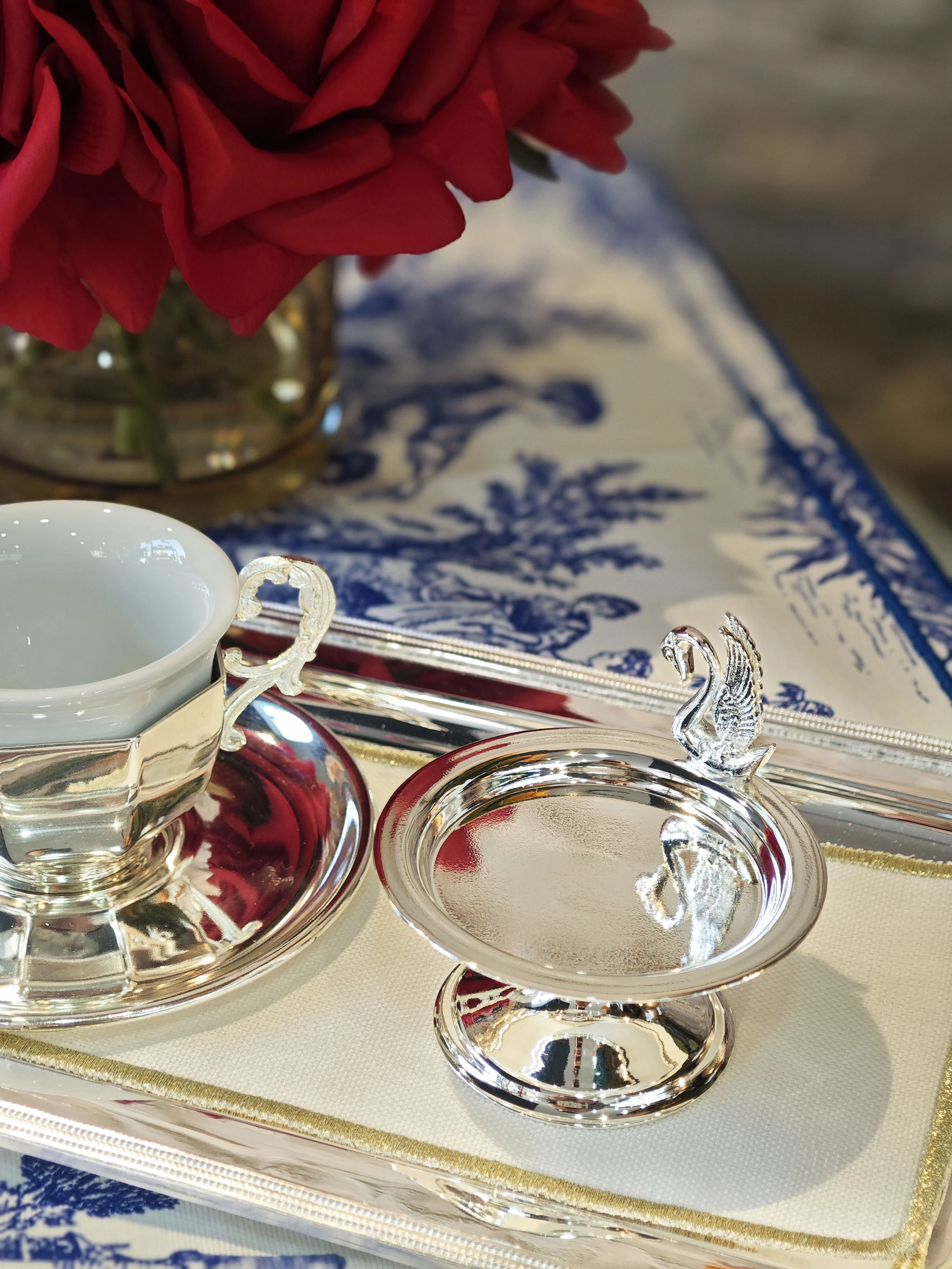 • Pirinç üzeri gümüş kaplama sunum ürünlerinizin uzun ömürlü güzelliğini korumak için düzenli bakım çok önemlidir. Zamanla, kullanım ve çevresel etkenler nedeniyle gümüş kaplamanın üzerinde sararma veya kararma meydana gelebilir. Bu durumda, gümüş parlatıcı ürünlerle düzenli temizlik ve bakım yapılması önerilir.