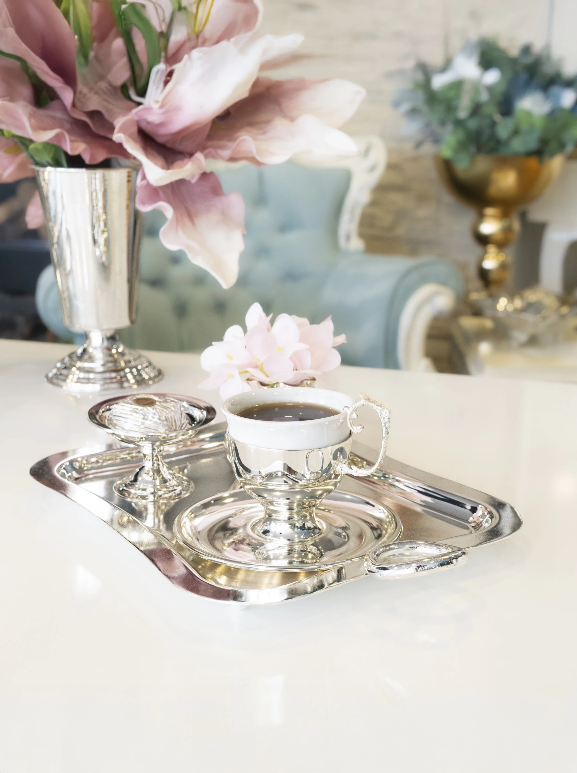 Eşsiz bir zarafet ve estetikle öne çıkan pirinç üzeri gümüş kaplama sunum ürünlerimiz, özel anlarınıza ve davetlerinize muhteşem bir dokunuş katıyor. İster özel bir daveti, ister günlük olsun, bu ürünlerimizle sunumlarınızı adeta bir sanat eserine dönüştürebilirsiniz.