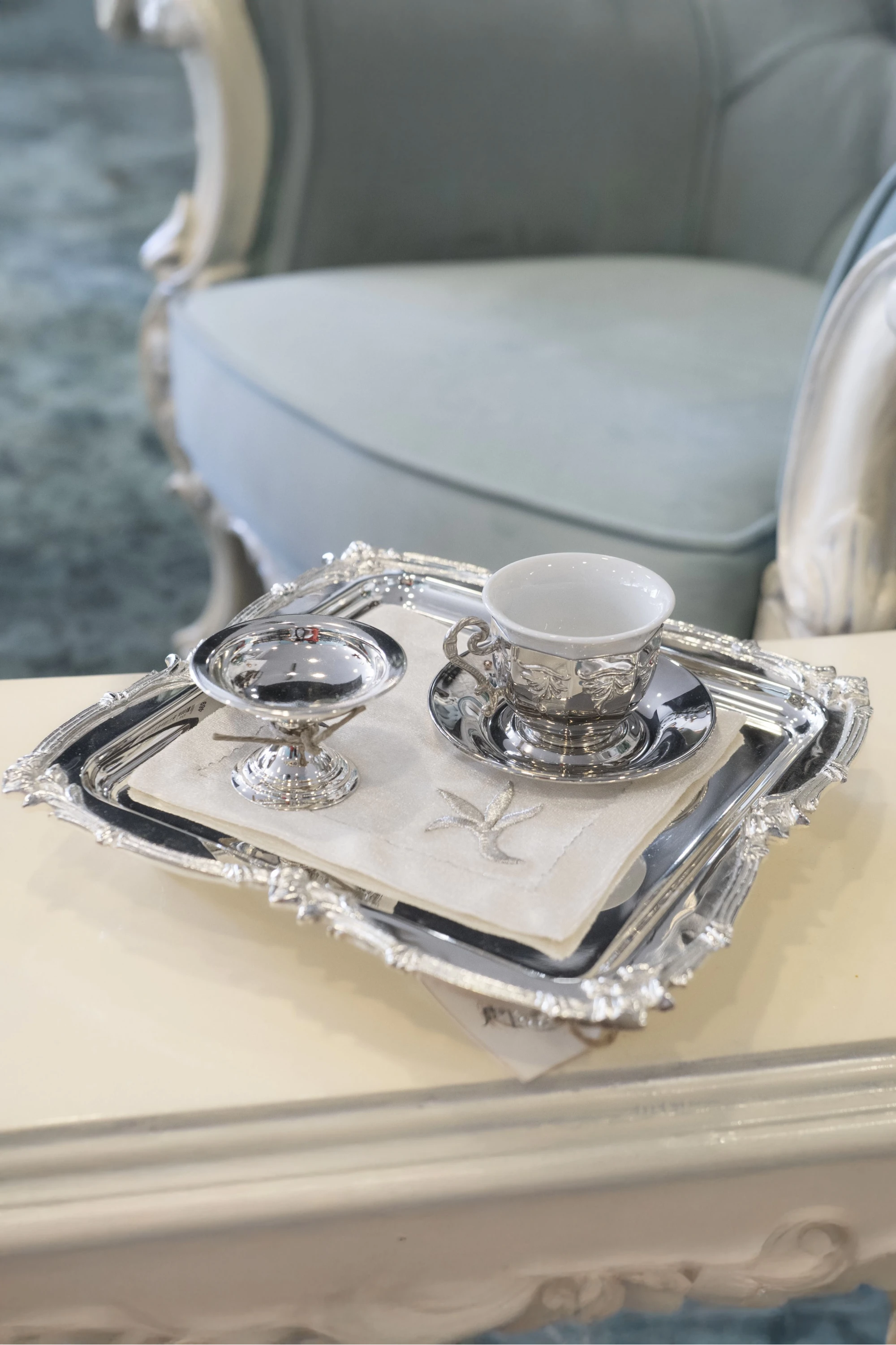 Eşsiz bir zarafet ve estetikle öne çıkan pirinç üzeri gümüş kaplama sunum ürünlerimiz, özel anlarınıza ve davetlerinize muhteşem bir dokunuş katıyor. İster özel bir daveti, ister günlük olsun, bu ürünlerimizle sunumlarınızı adeta bir sanat eserine dönüştürebilirsiniz.