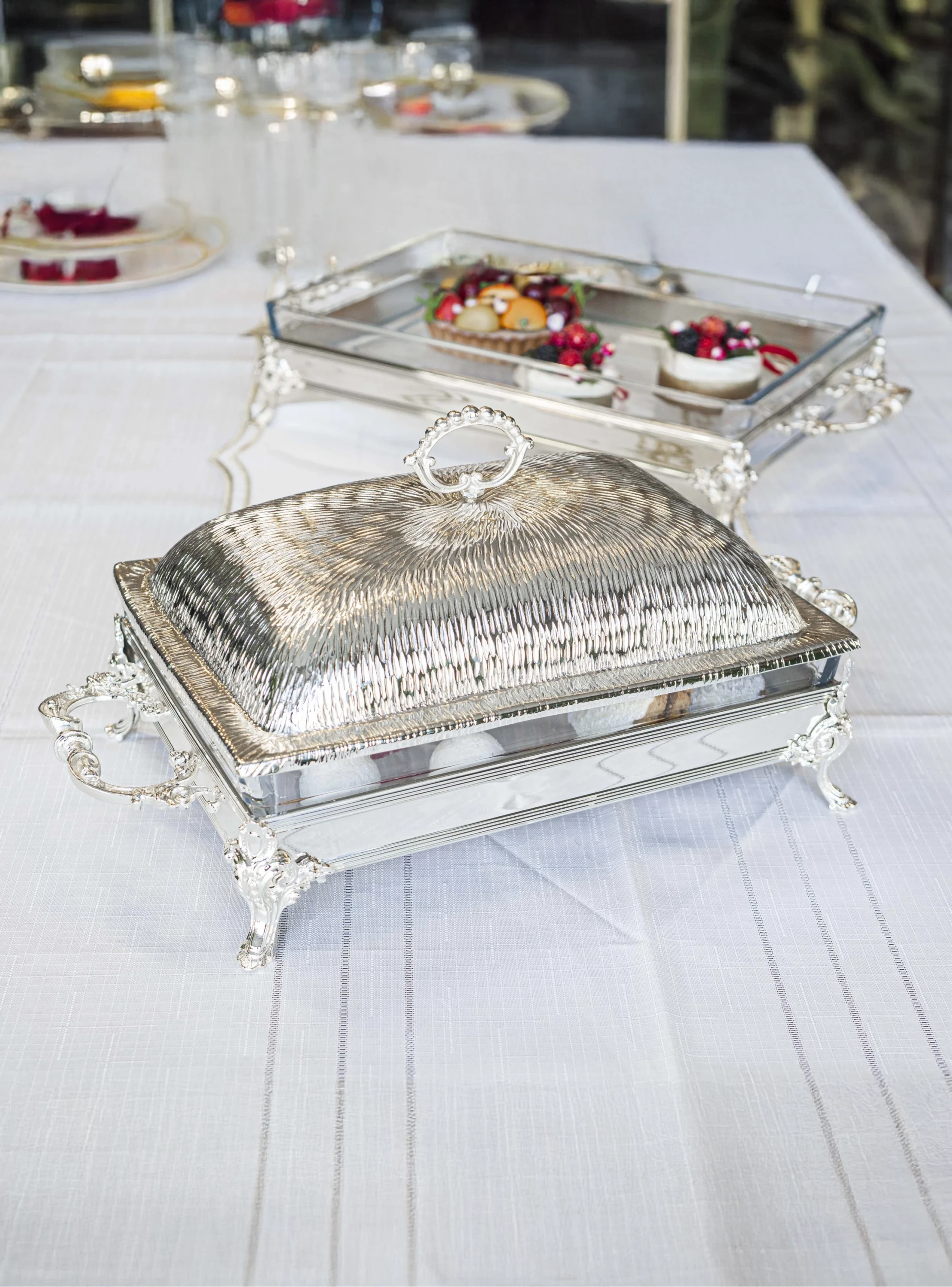 Pirinç üzeri gümüş kaplama sunum ürünlerimiz, sofralarınıza sofistike bir dokunuş katarken, aynı zamanda özel anlarınıza unutulmaz bir atmosfer sunmak için ideal bir seçenektir. En özel anlarınızı şıklık ve zarafetle taçlandırmak için bu ürünlerimiz sizleri bekliyor.
